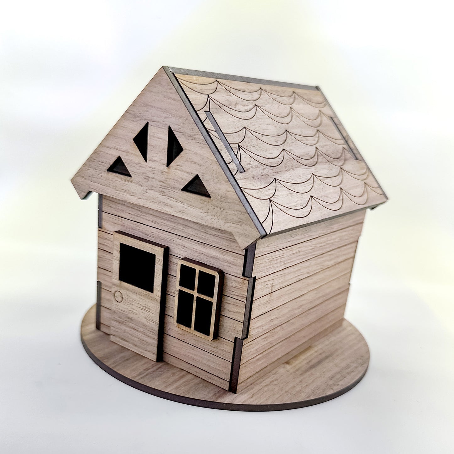 This adorable farmhouse is going to be perfect to add to your Christmas Village this year. It would also make a cute Christmas tree ornament. There is even a hole in the bottom to accommodate a tea light or some Christmas lights. This laser cutting file fits on one sheet of Medium Proofgrade material. It is also a score and cut so it is quick to get cut and put together.