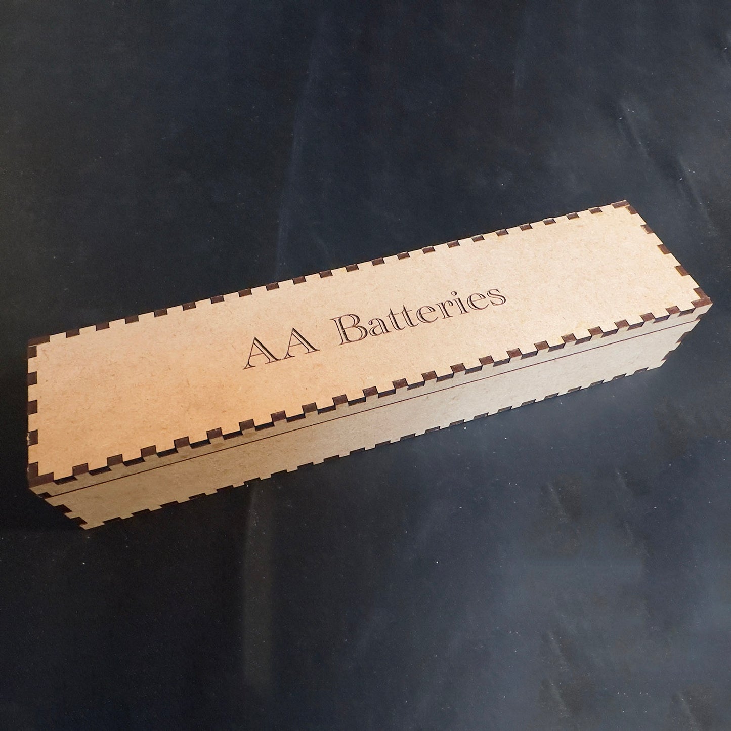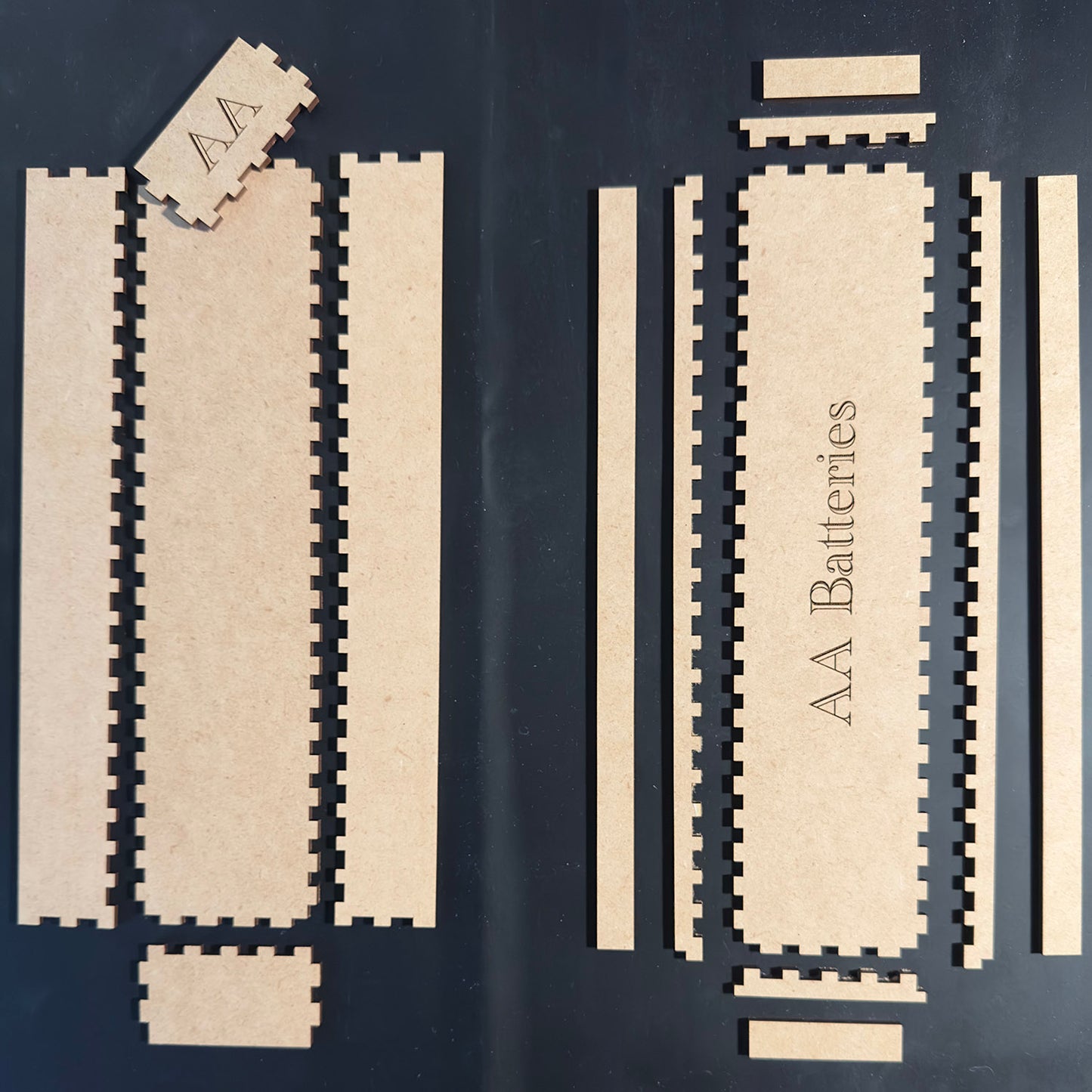 A simple box, perfect for laser cutting, to keep your AA Batteries organized. Can fit up to 36 batteries. No more half-torn packages that clutter your drawer or cabinet.