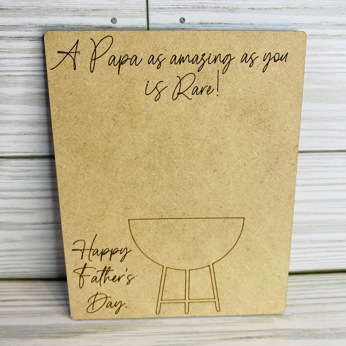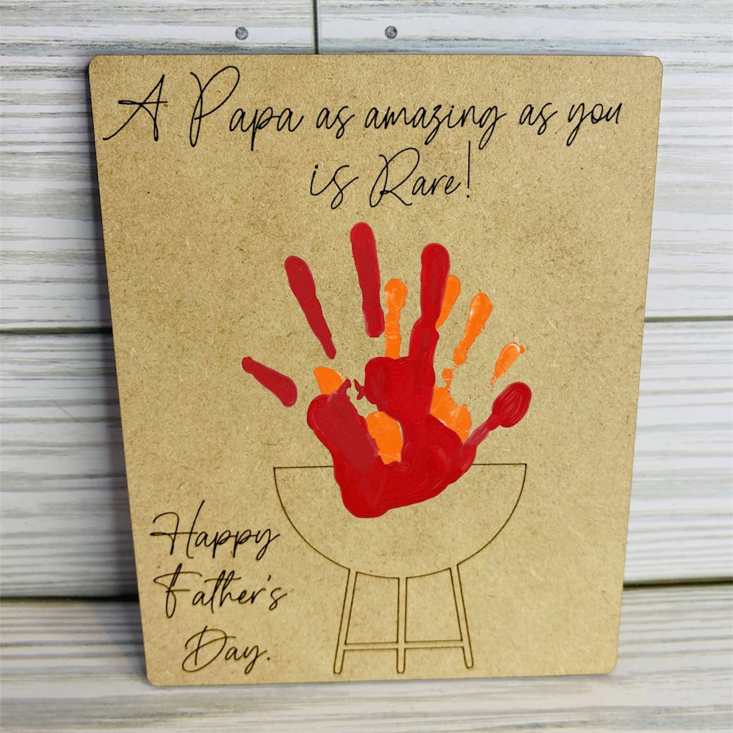 How adorable is this unique handprint grill sign for laser cutting?! Great gift for Father's Day! (You can also remove the happy fathers day and customize it more) Get creative and use different colors for the handprints (red, yellow, orange) Add names to the other side of the grill to make it personal. Fast laser cut. Score lines are provided for grill so it's easier to paint or leave it blank if you want. Need another title such as Grandpa, Pop Pop, Dad, or Grandfather? Check out my other versions in the catalog.