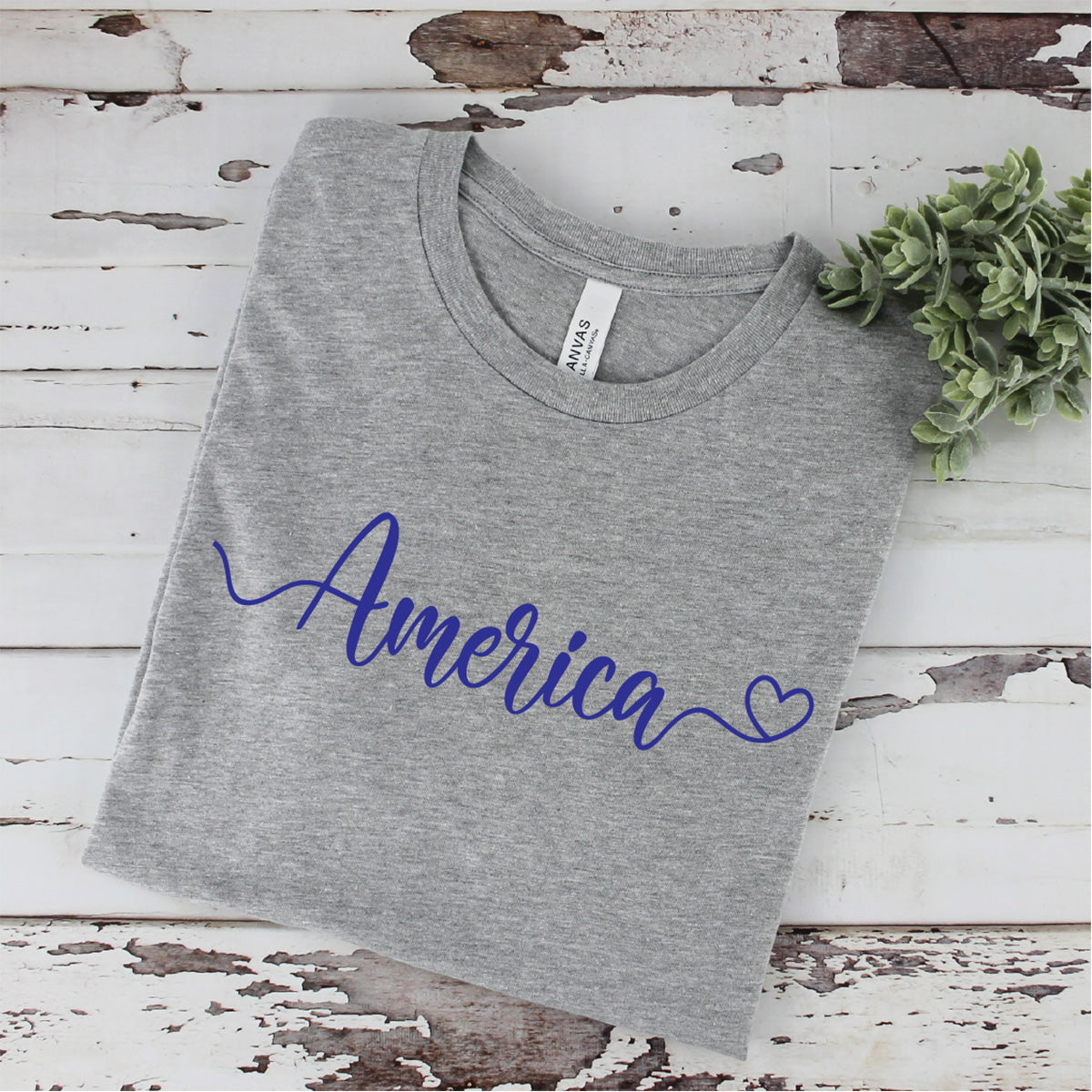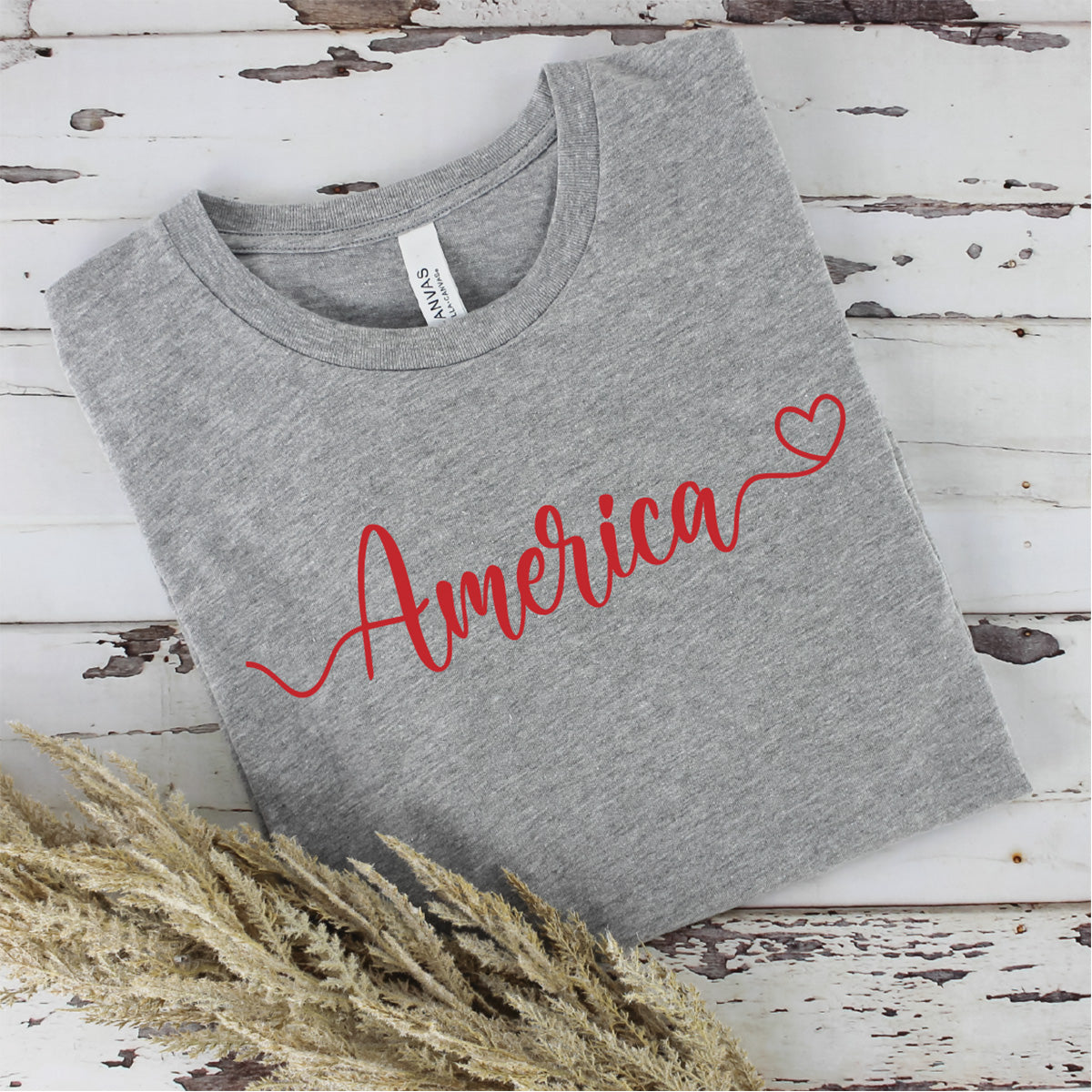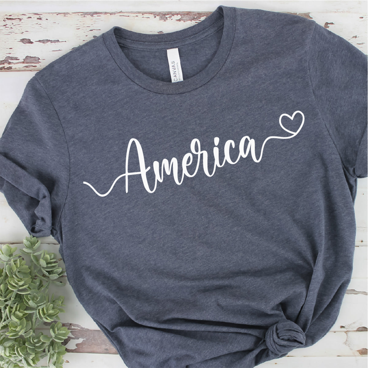 Our America with Heart Swash design is a simple, patriotic graphic. Perfect for Eco Iron-On, it’s ideal for creating 4th of July or year-round shirts, tumblers, tote bags, and more. You can also engrave it on leather or wood, or even cut it out of acrylic or wood. Versatile and easy to use, this design adds a heartfelt touch to any project. Get creative with this graphic and showcase your patriotism!