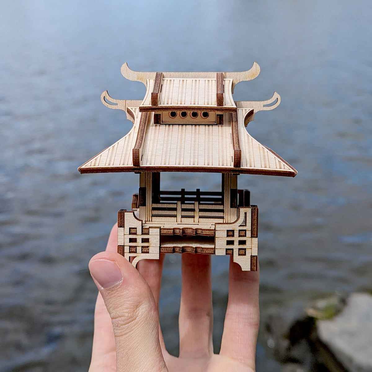Small Asian house featuring traditional architectural elements. Ideal for decoration of home plants or display purposes. Exquisite craftsmanship and intricate details. Perfect addition for collectors or enthusiasts of Asian culture.