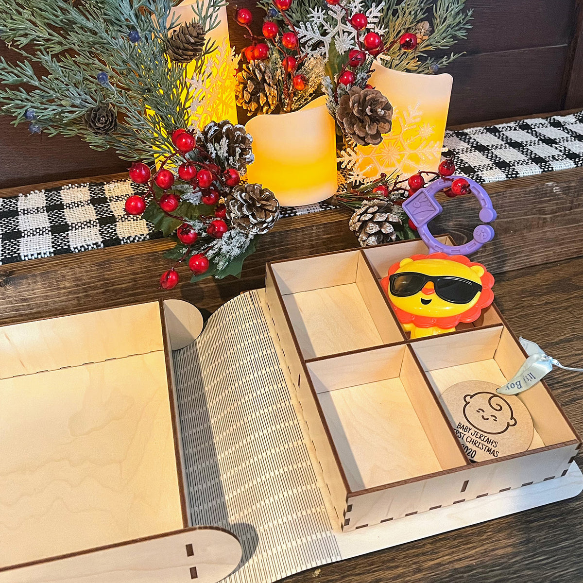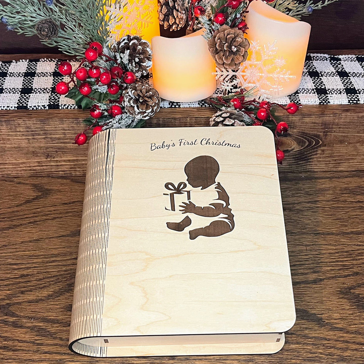 Maintain the cherished memories of your baby’s first Christmas. These book boxes make an elegant display for the little trinkets of a baby’s first Christmas any parent will want to keep forever. There is also plenty of space underneath the picture to customize the book with little extras like the baby’s name and how old they are on Christmas.