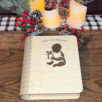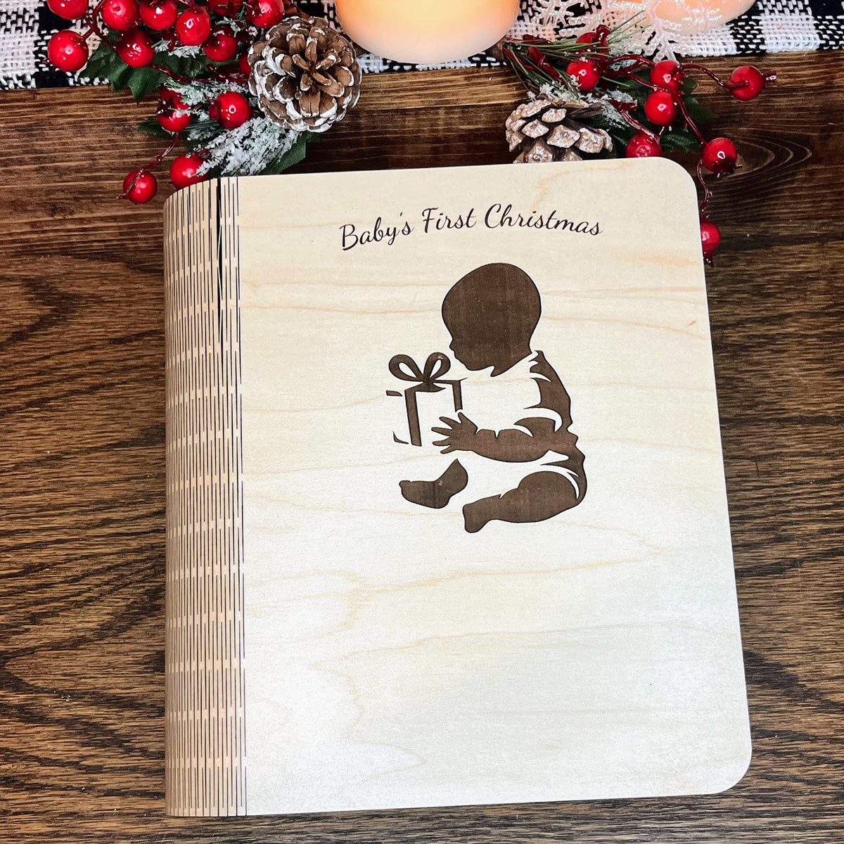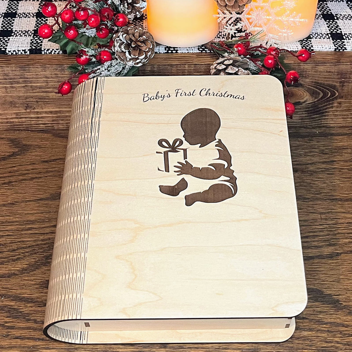 Baby's First Christmas Keepsake Book Cover - Baby Holding a Present