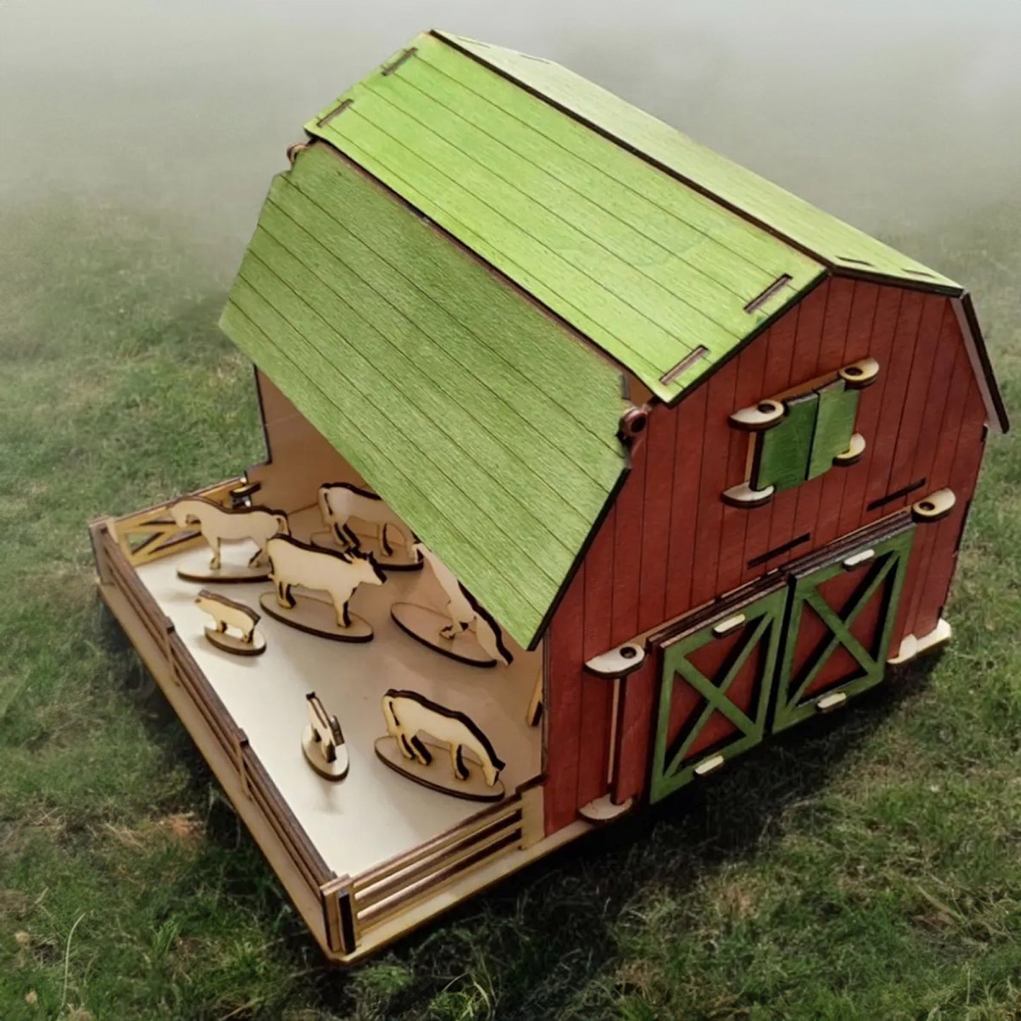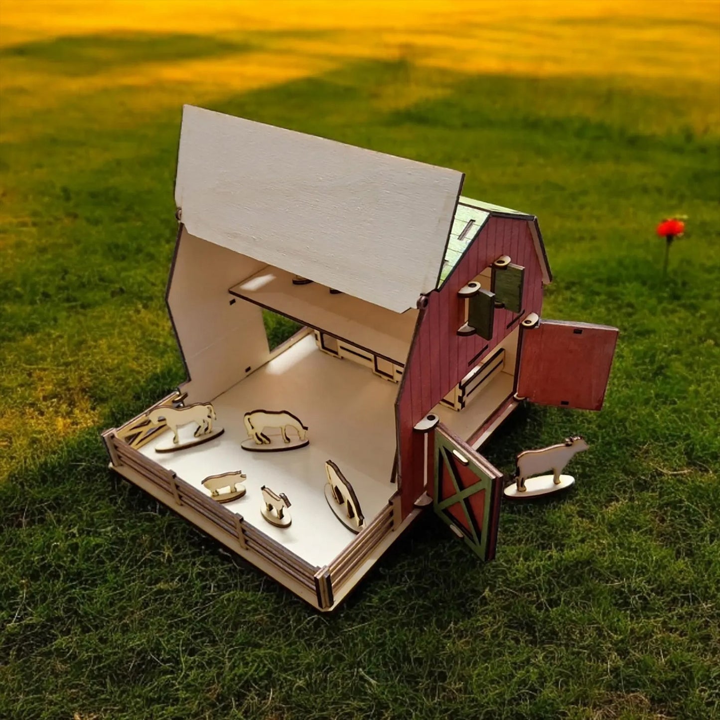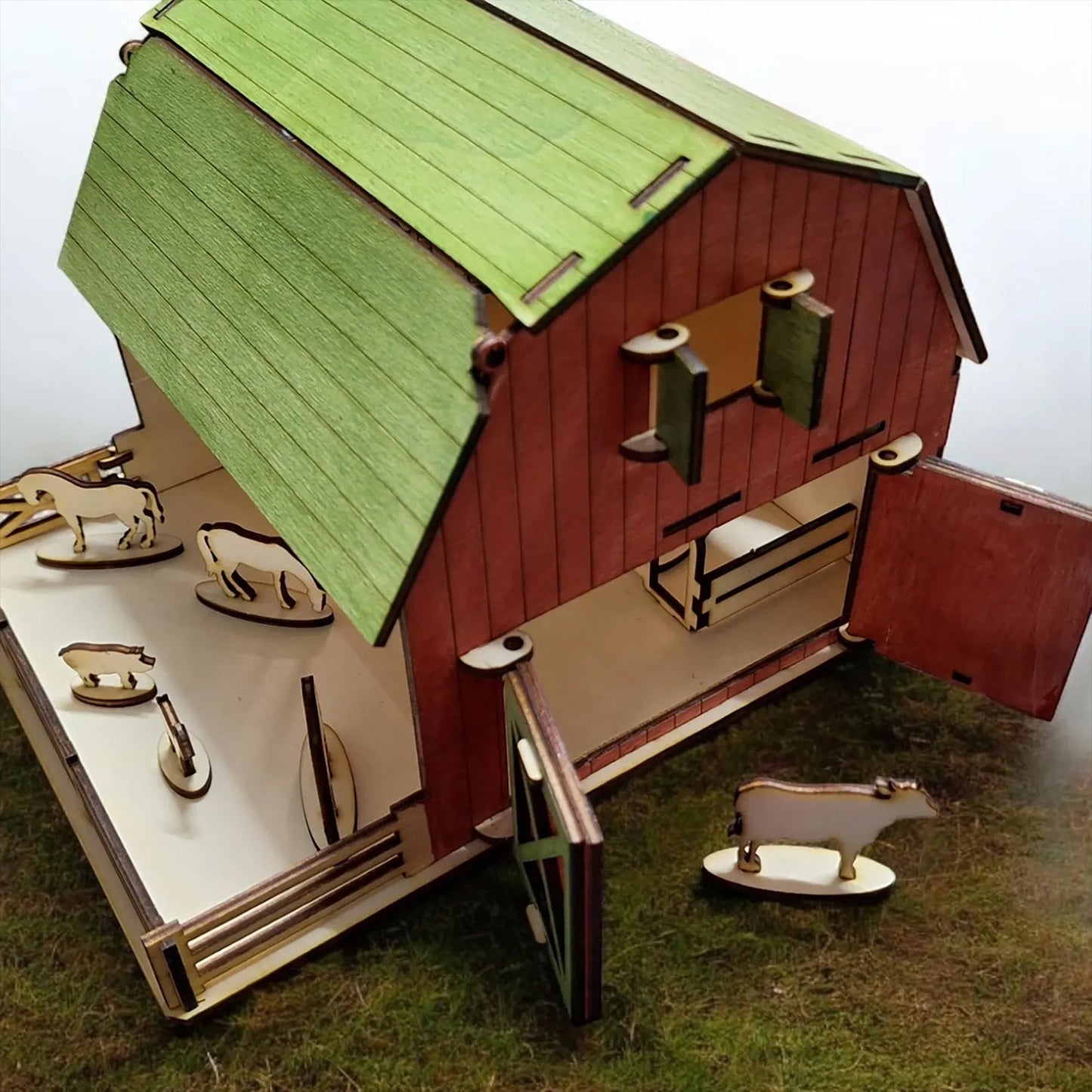 Barn Dollhouse with Farm Animals and Opening Door and Roof