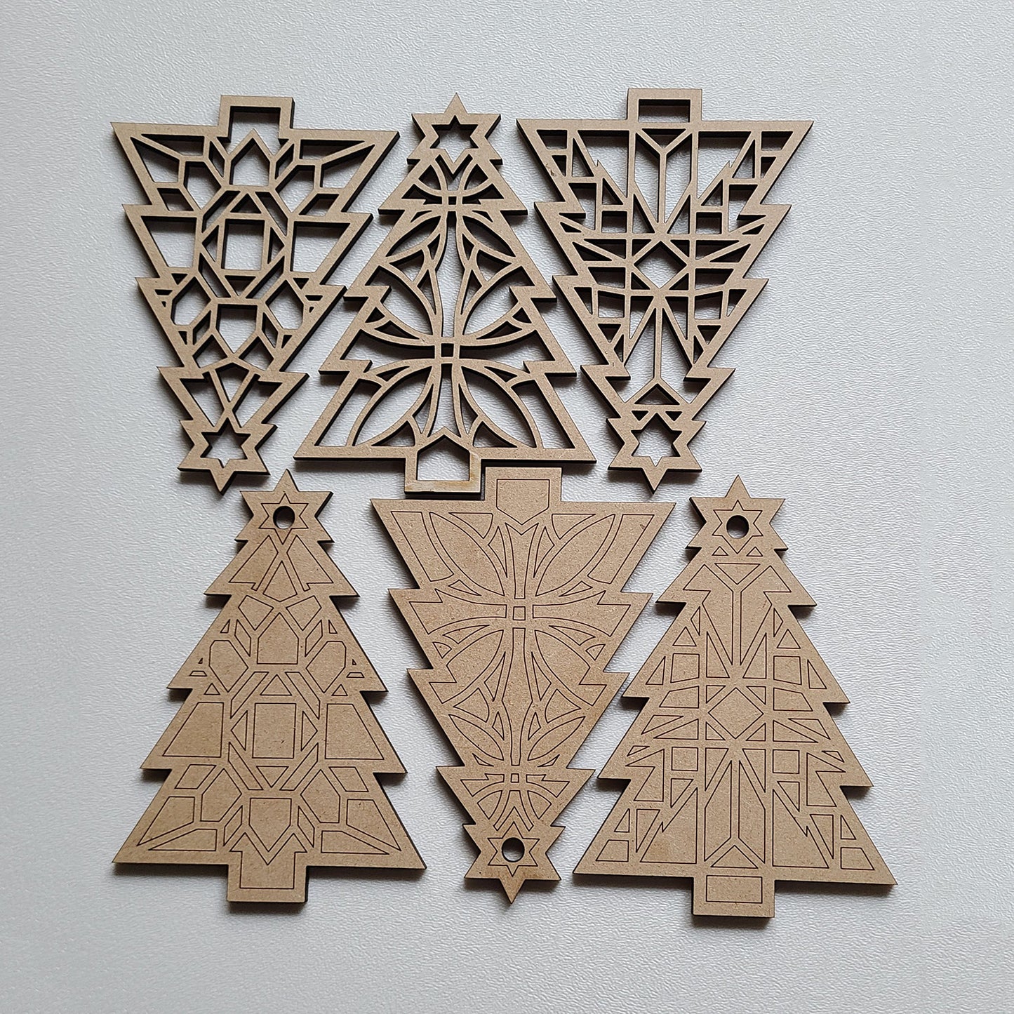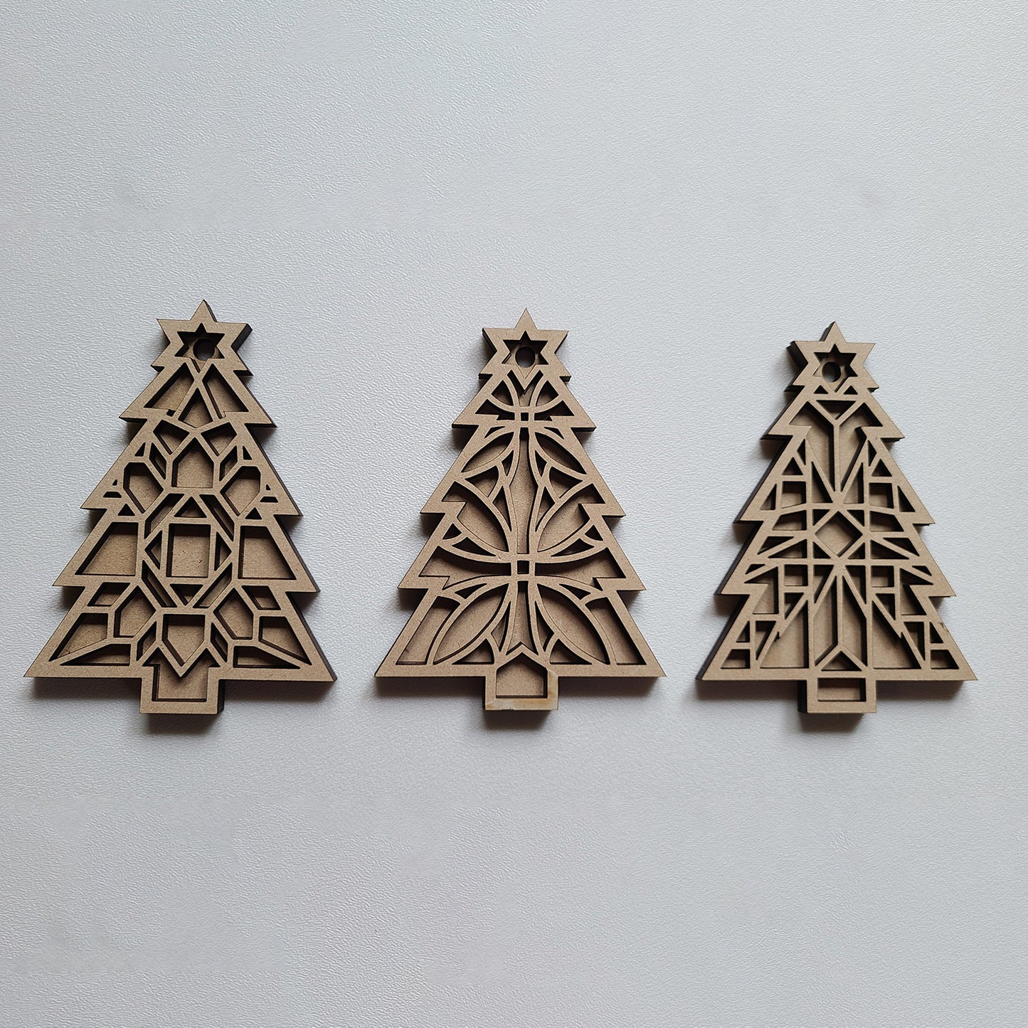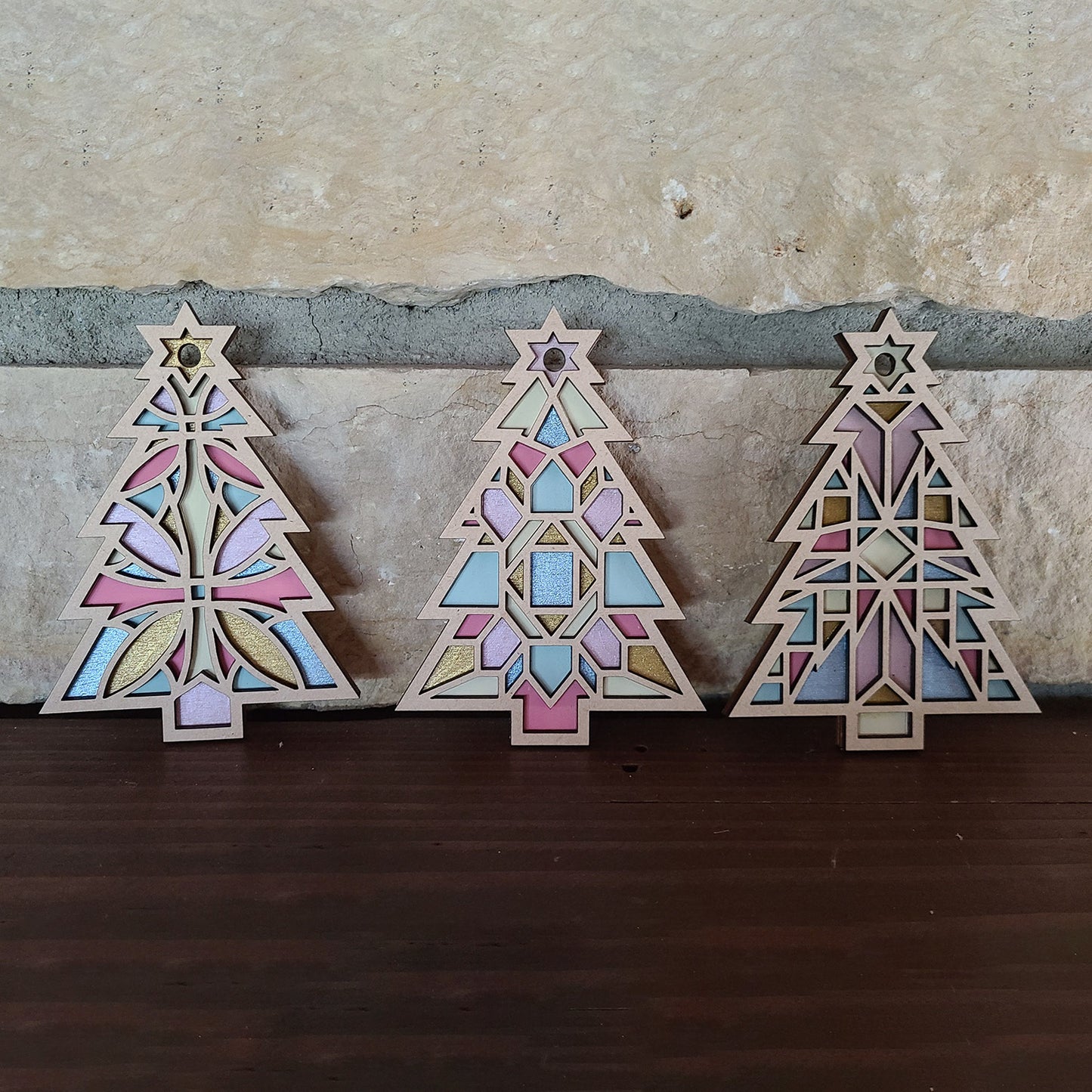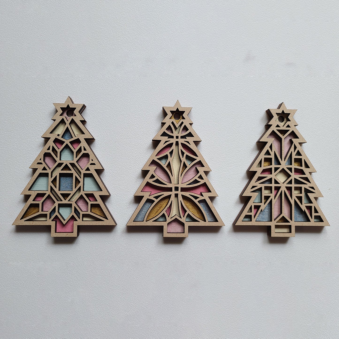 This set of three barn quilt-inspired ornaments makes a great gift, stocking stuffer, or personal bit of decor. They are extremely friendly to laser cut and craft. Choose to paint the bottom layer if you like, with plenty of room for novice painters to make something truly unique.