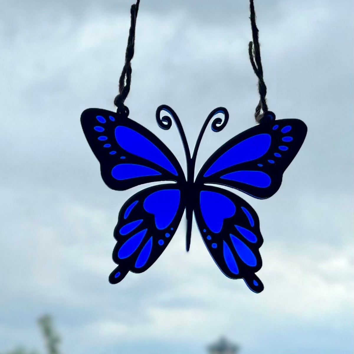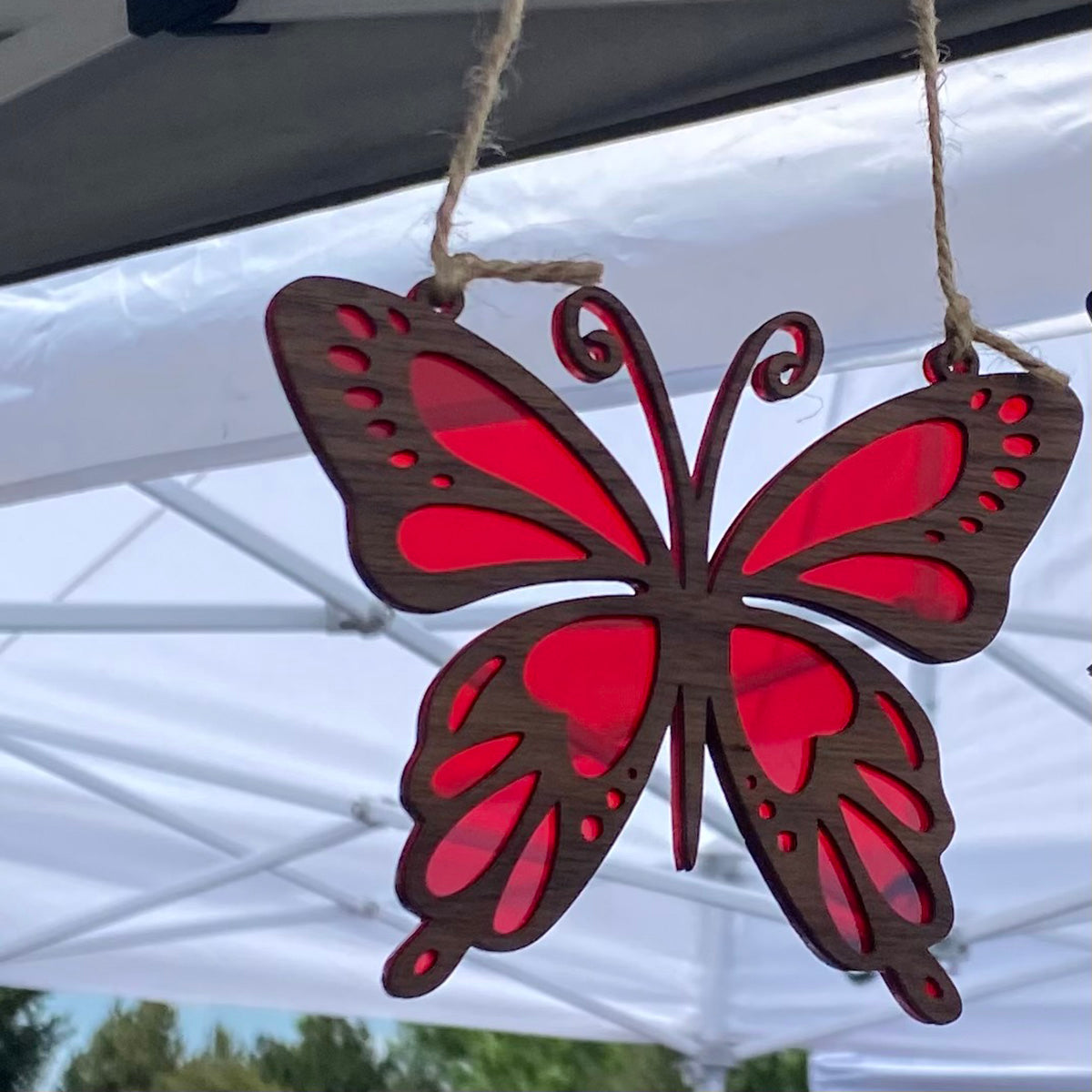 Simple yet beautiful butterfly suncatcher. Experience nature's beauty indoors with our Woodland Whisper Butterfly Suncatcher. Crafted from medium-proofgrade wood and clear acrylic, this suncatcher is a charming addition to any home or as a car charm.