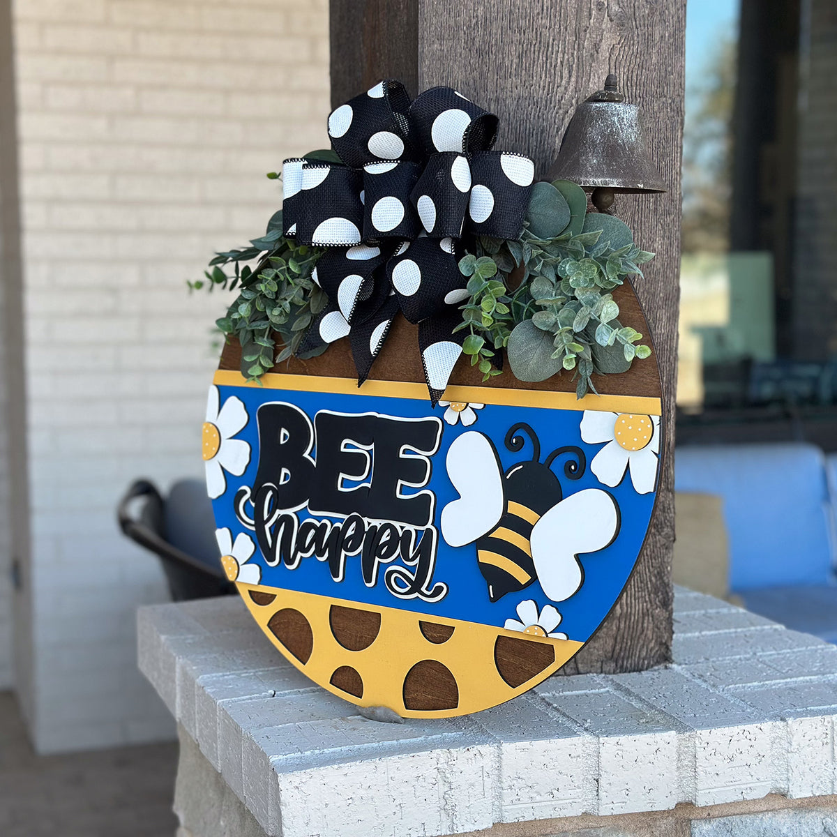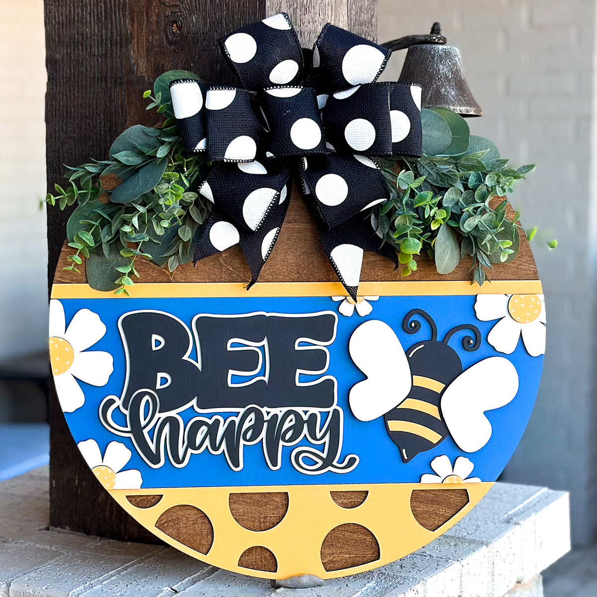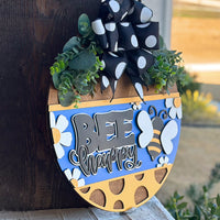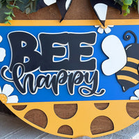 Bee Happy Round Door Hanger Polka Dot Sign Farmhouse Porch Decor