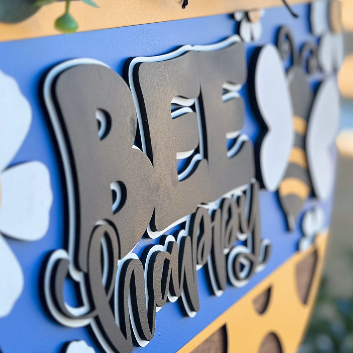 Spread positivity with this charming "Bee Happy" round door hanger design! Featuring a playful bee, daisies, and cheerful polka dot accents, this farmhouse-inspired piece is perfect for Glowforge users. Craft summer porch decor or thoughtful gifts that brighten up any space. Perfect for farmhouse-themed spaces, summer decorations, and whimsical DIY projects!