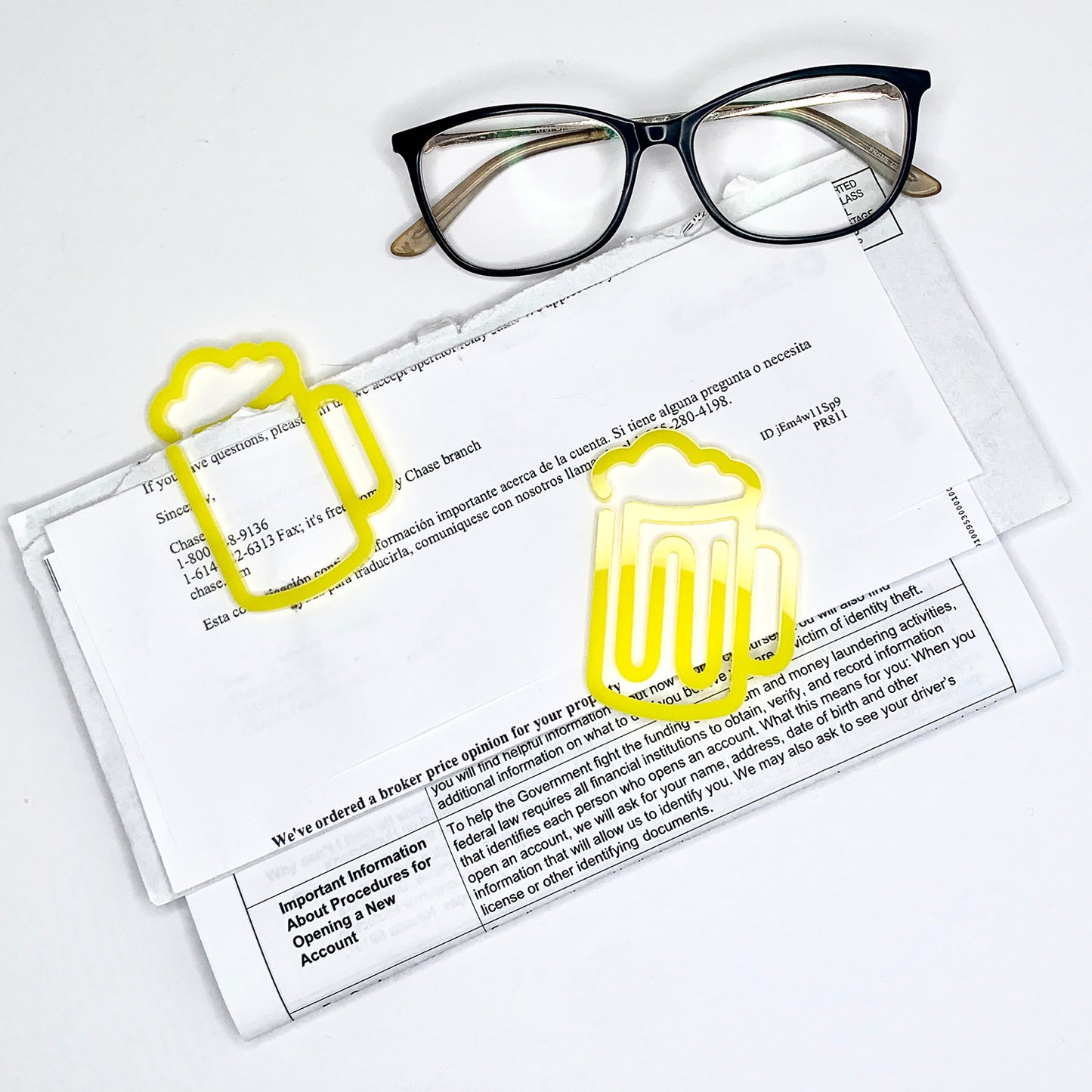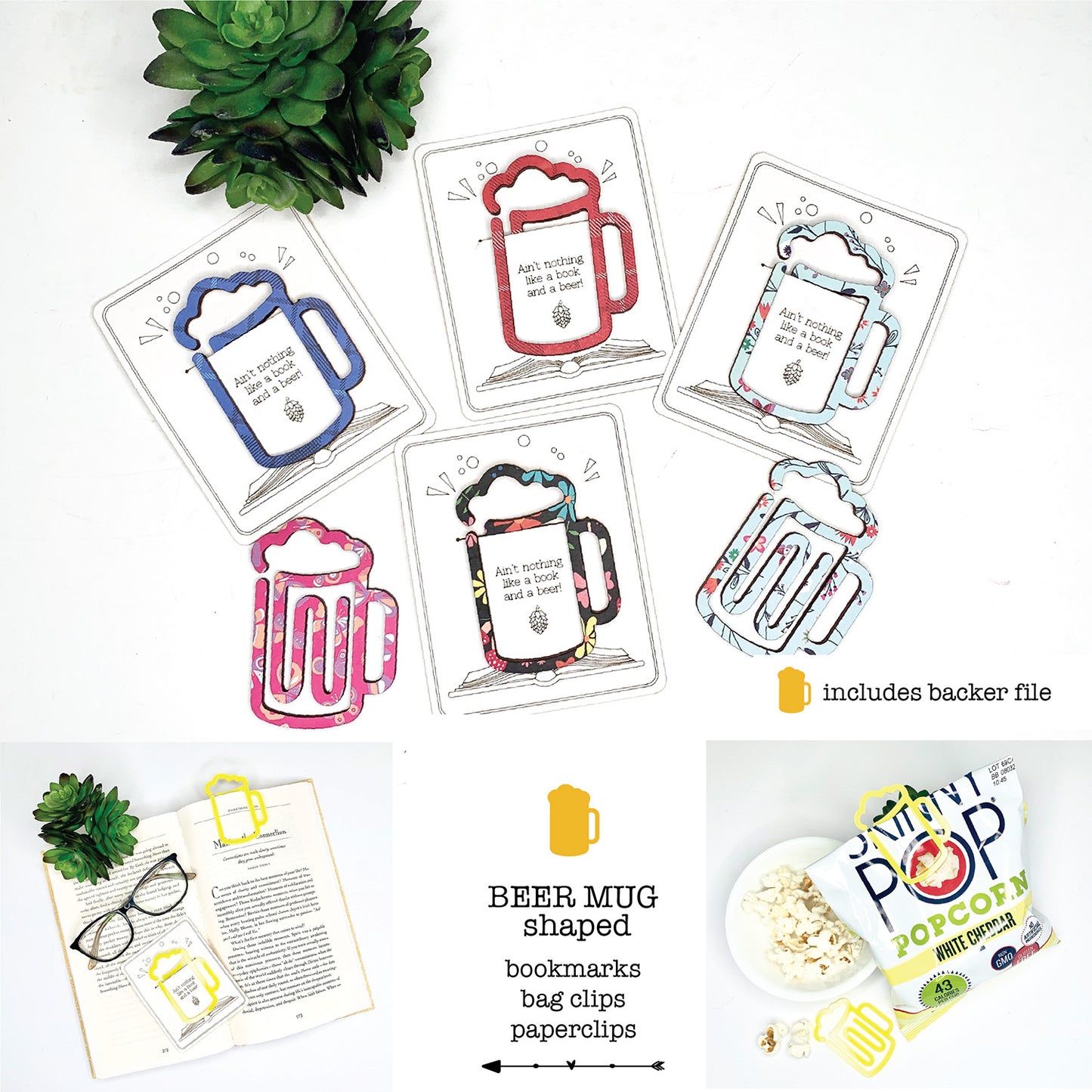 Beer Mug-Shaped Bookmark with Card Backer - Paperclip - Snack Bag Closure
