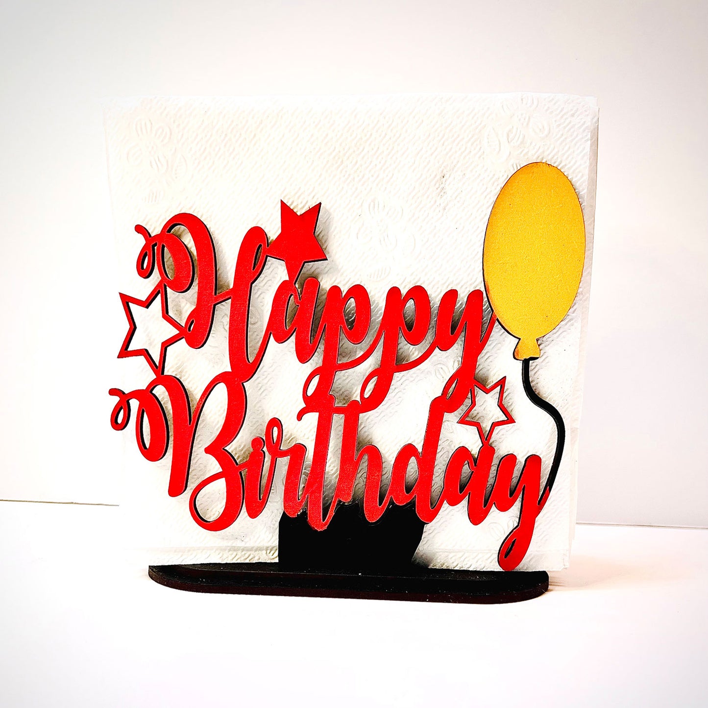 One of a kind, laser cut napkin holder. Can be painted in your favorite colors to add flair to your birthday celebration.