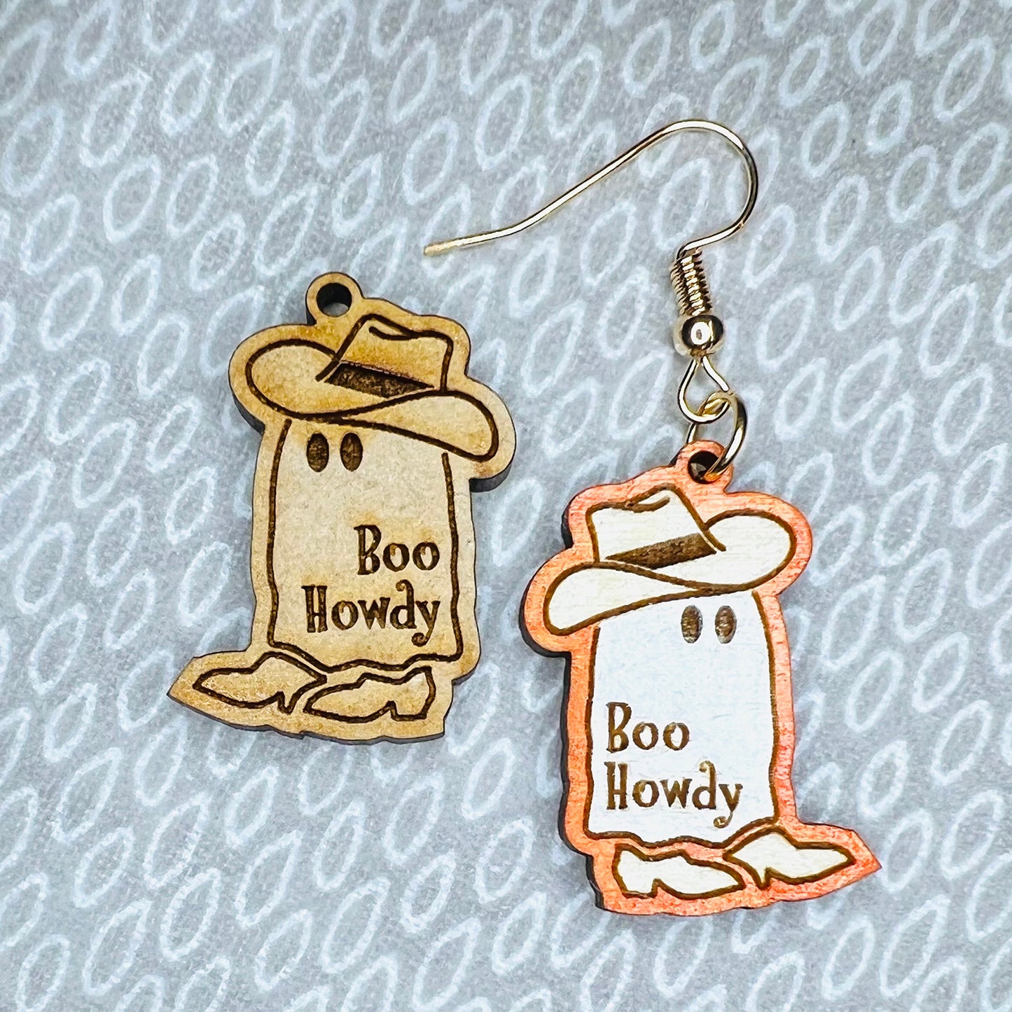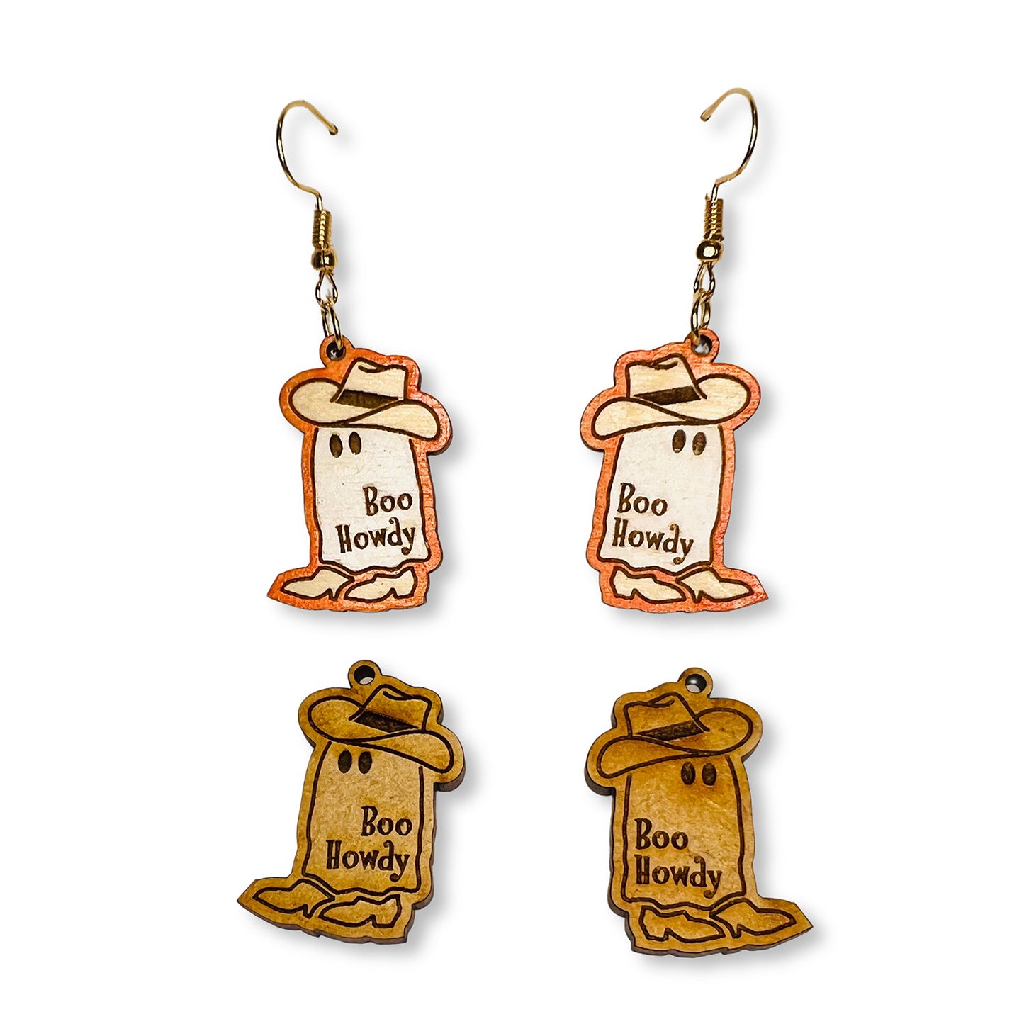 Boy howdy, these country spooks are cute! Laser cut them as-is for a fun pair of earrings, or size up the design for a key chain. These would be beautiful in leather or even the Eco Iron-On. Happy Halloween, ya'll!