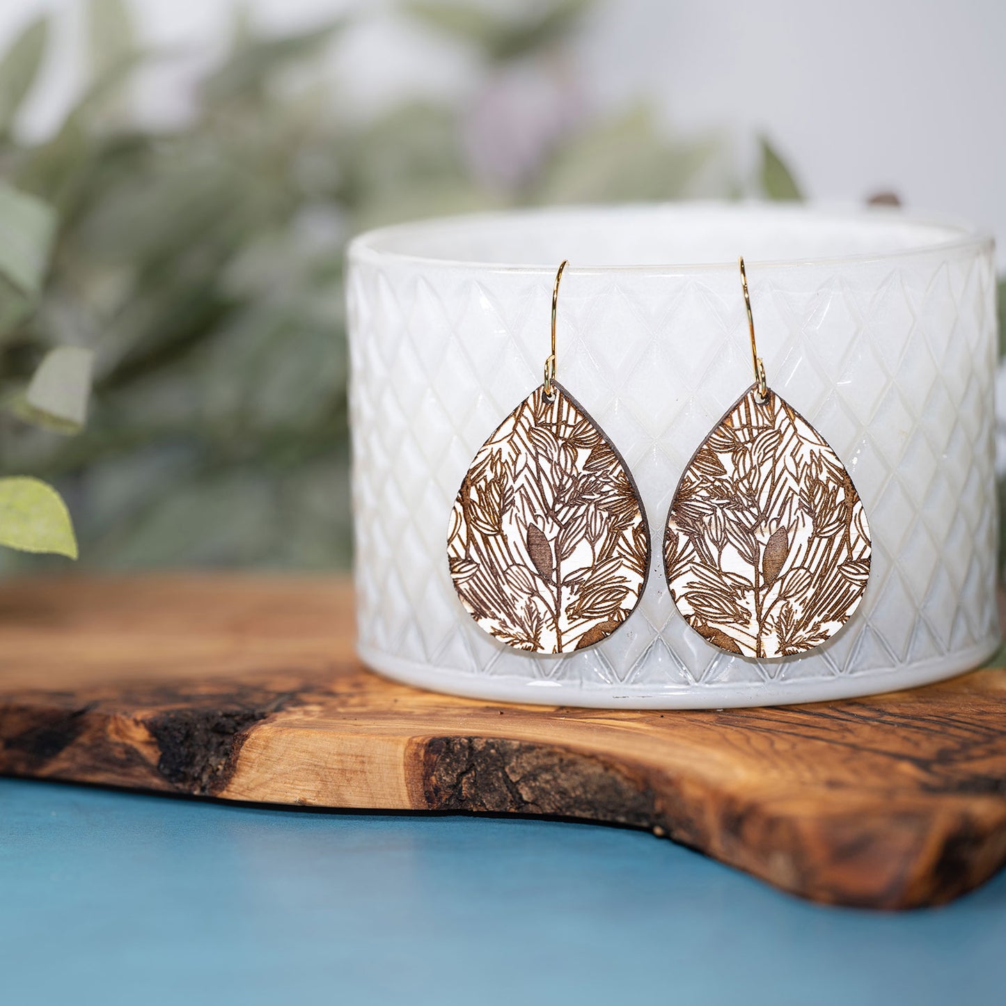Botanical Leaves and Flowers Dangle Drop Earrings