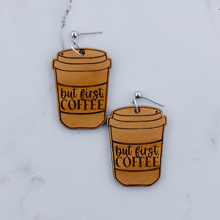 Start your day with a charming touch by wearing these But First, Coffee Dangle Earrings! Perfect for coffee lovers and suitable for any casual or themed outfit.