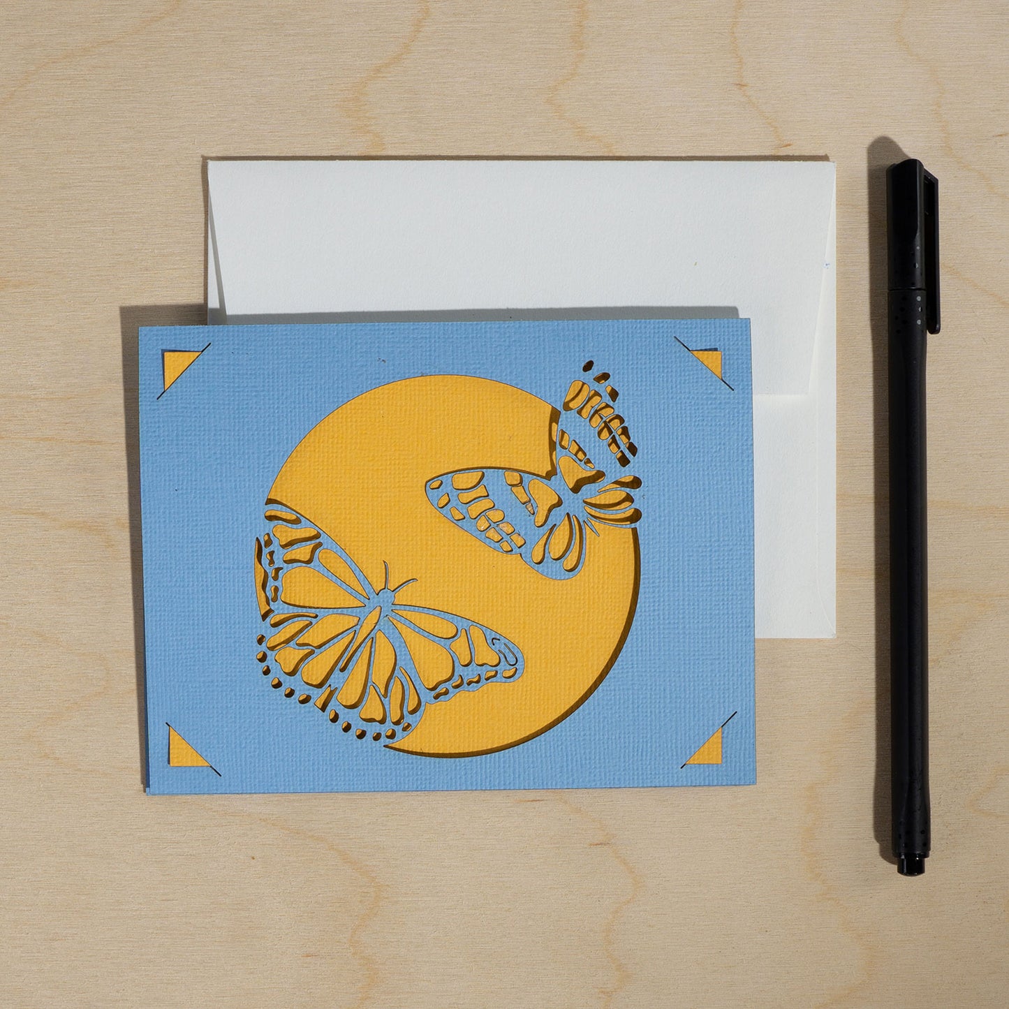 Celebrate any occasion with this simple, laser cut greeting card. Cut the insert in a contrasting color to create a card with impact. No glue is required to assemble this card which makes creating and gifting it quick and easy.