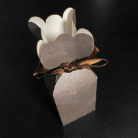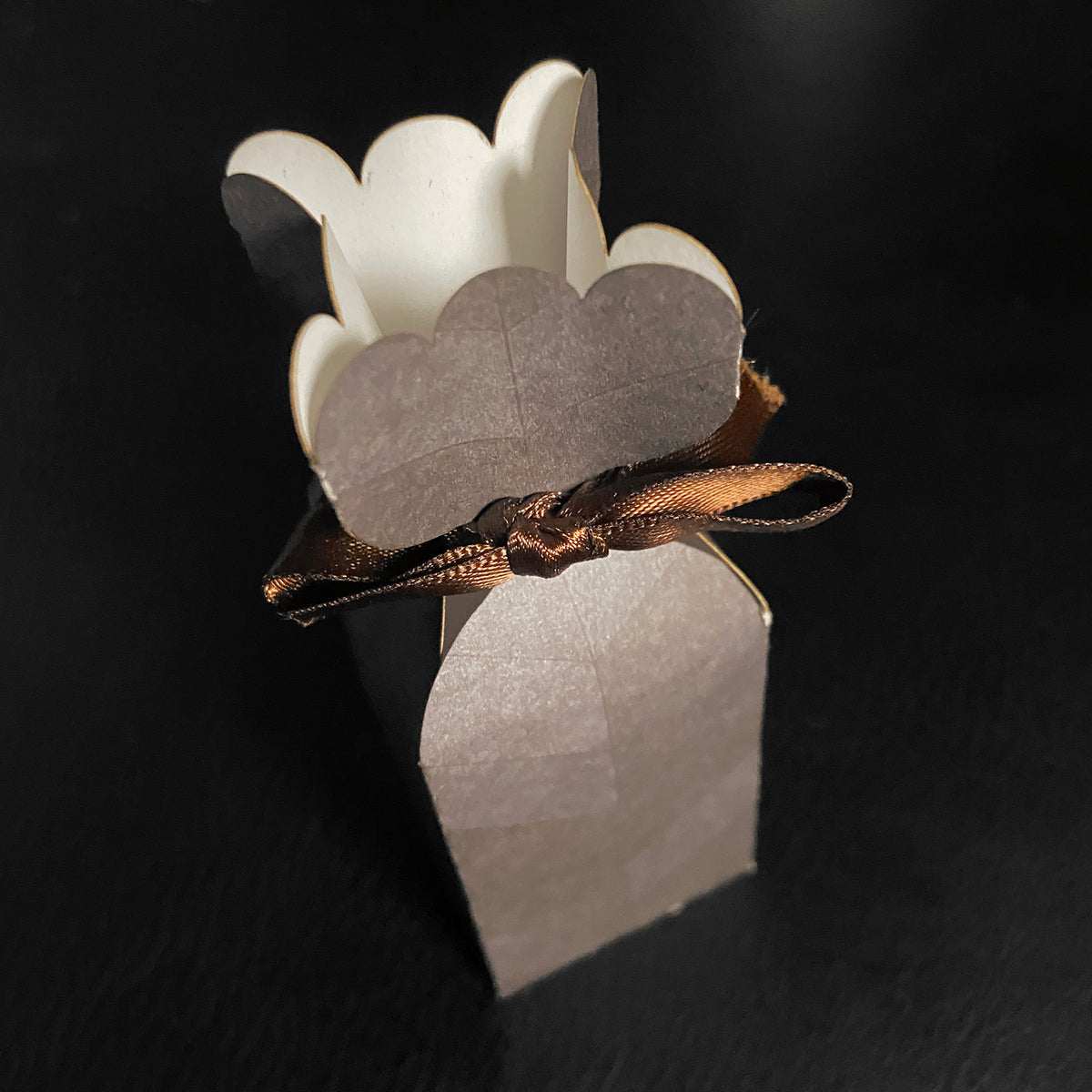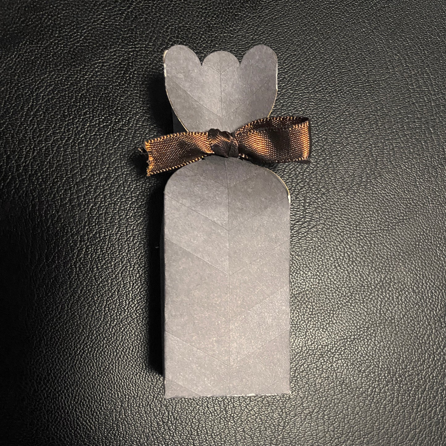 Add a touch of sweetness to your gift-giving with the Candy Wrapper Gift Box, crafted from elegant cardstock. This delightful box design features scalloped edges at the top, secured with a decorative ribbon for a charming finish. Perfect for wrapping treats, small gifts, or party favors, this unique gift box captures the whimsical essence of candy wrappers while providing a practical storage solution.