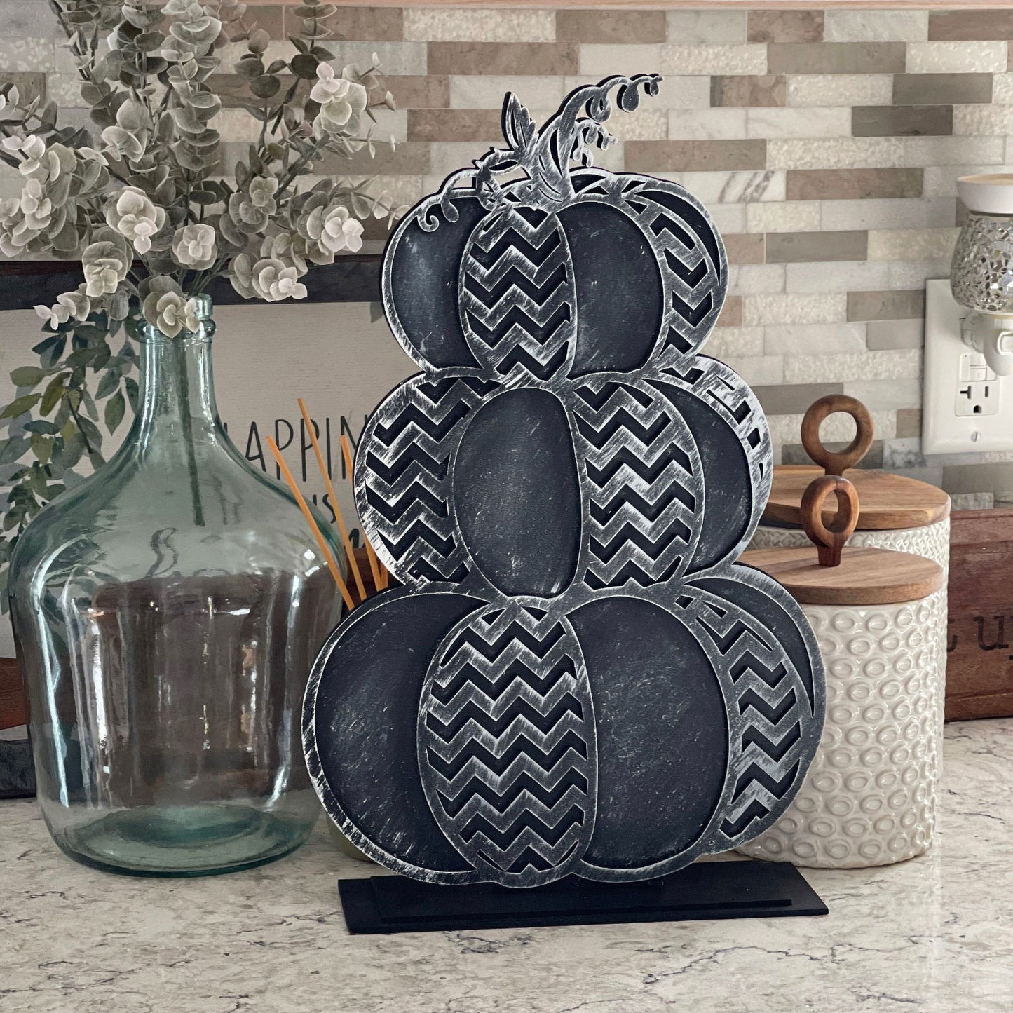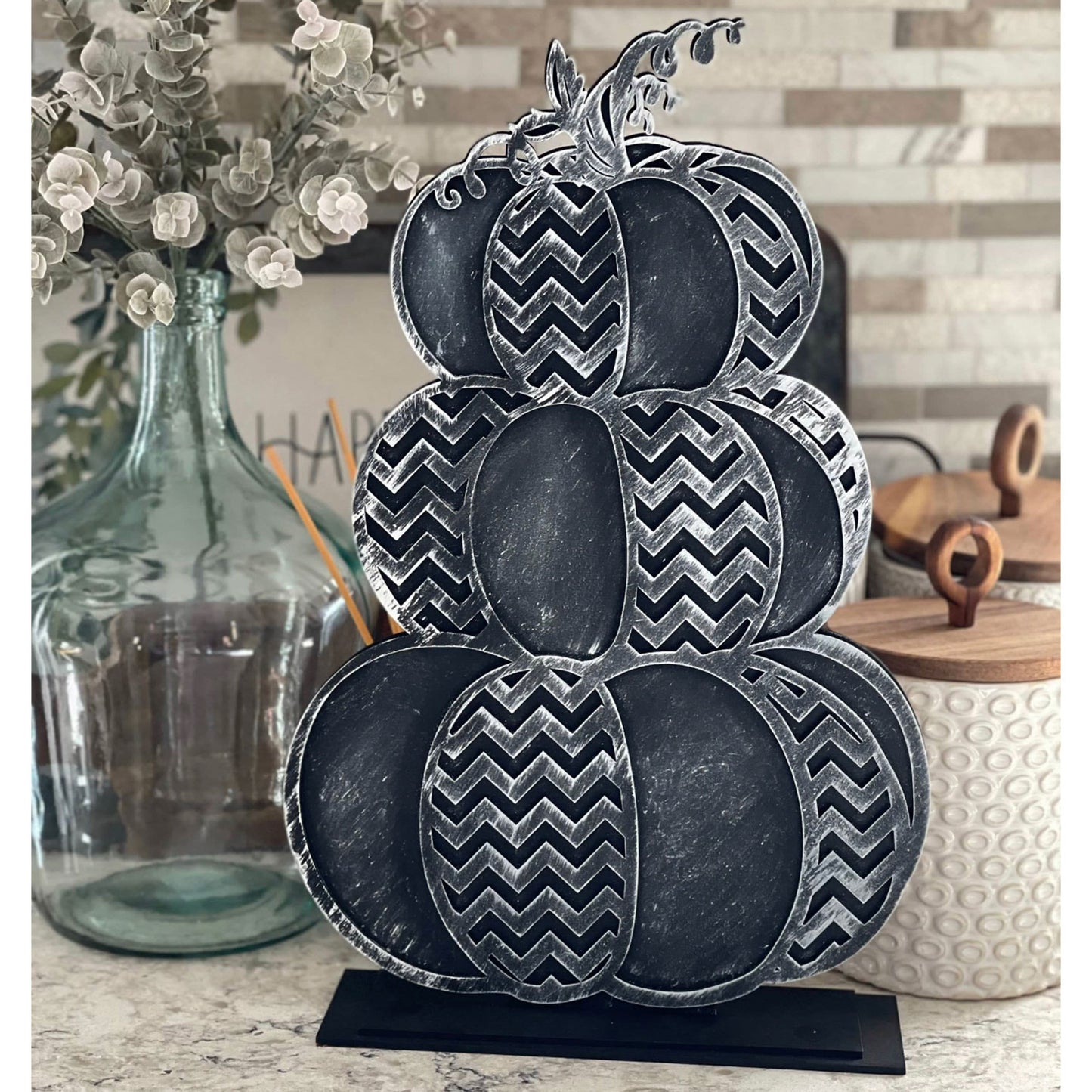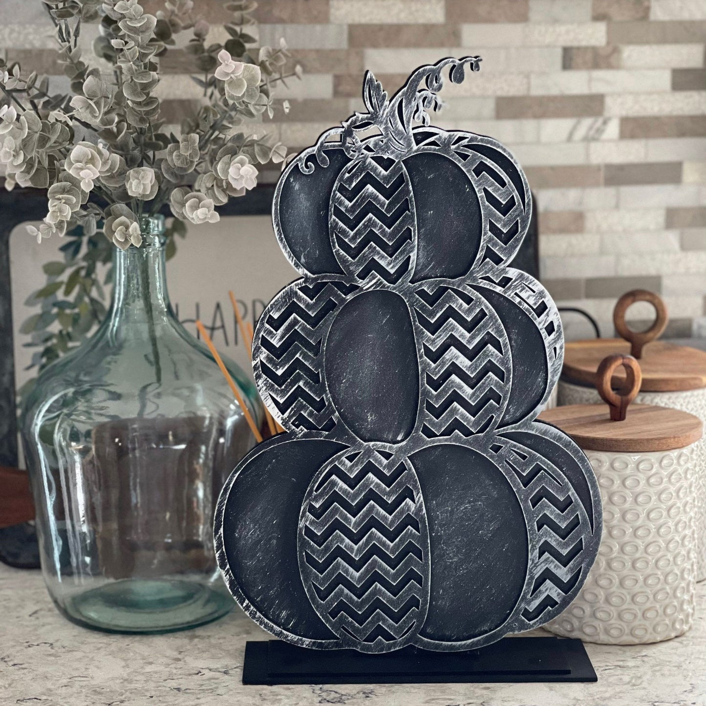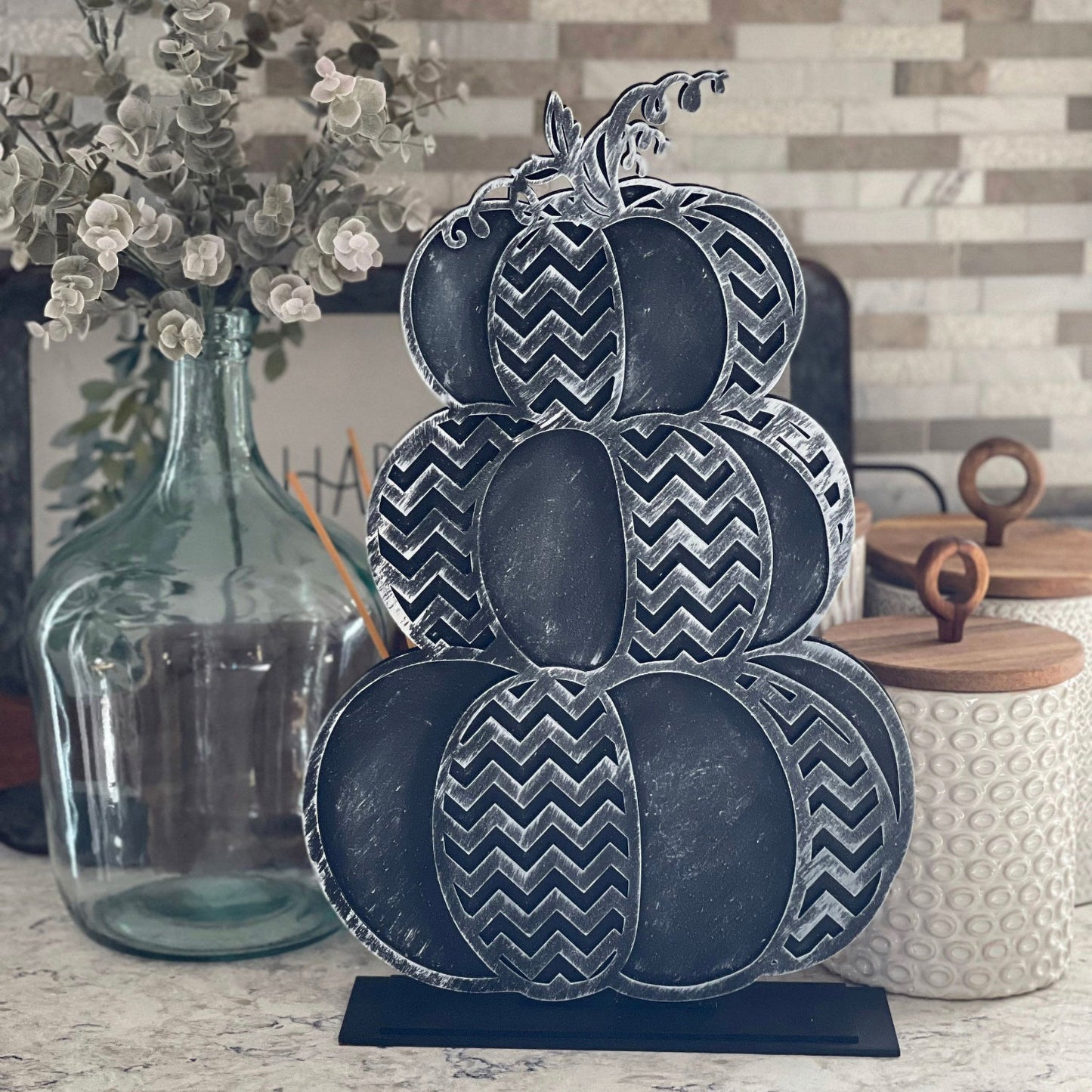 An elegant way to decorate your shelves or mantle with these stunning laser cut chevron stacked pumpkins in a farmhouse style. Made with proof grade medium draftboard and painted with chalk paint to provide that farmhouse vibe. Perfect for paint night parties and items to boost your small business as well as make great gifts. These make quite the statement piece. They measure almost 17" tall and take 2 sheets of medium proofgrade draft board. Stands are best cut from 1/4" material to provide height. Happy crafting!