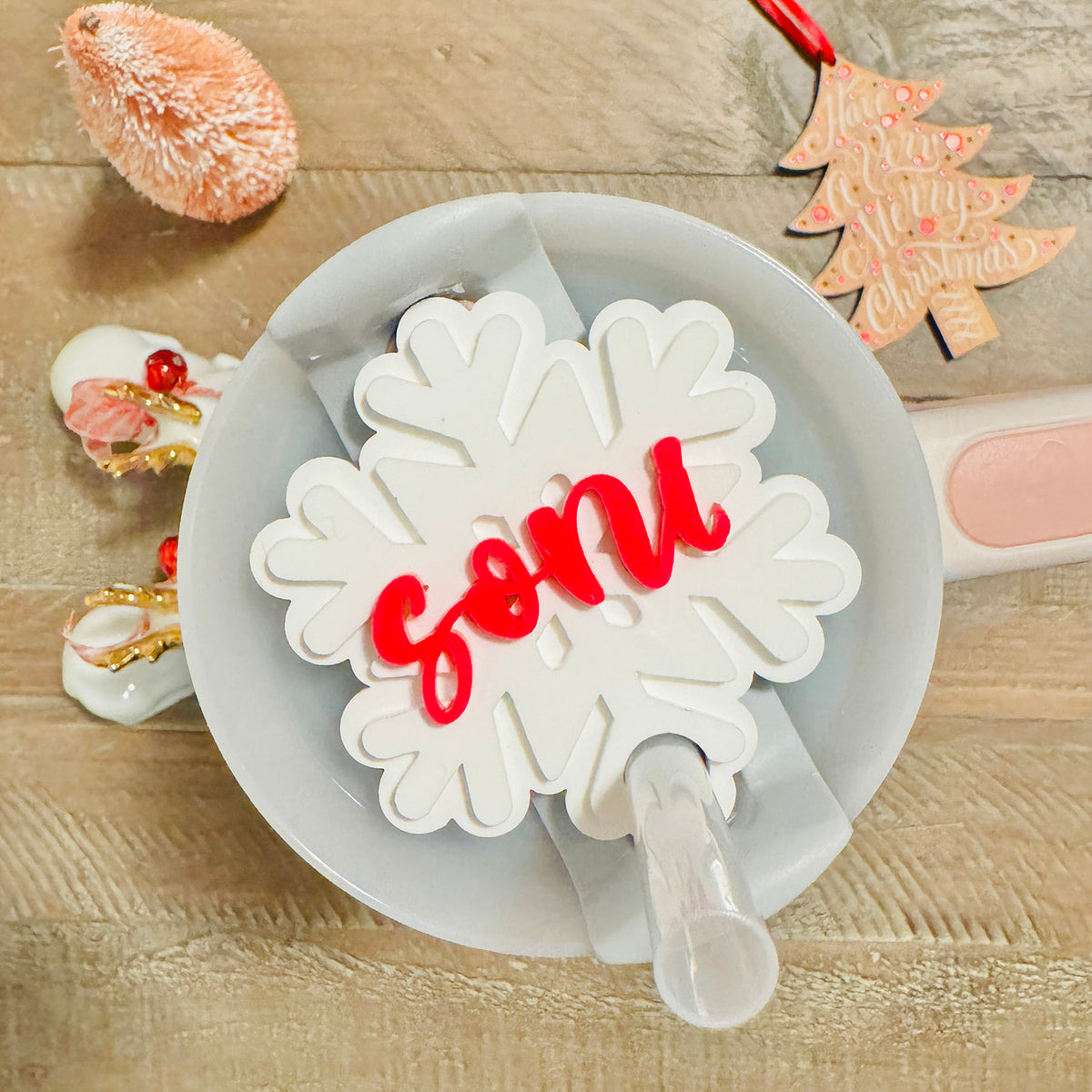 Christmas Snowflake Lid Topper compatible with 30oz Stanley Tumbler