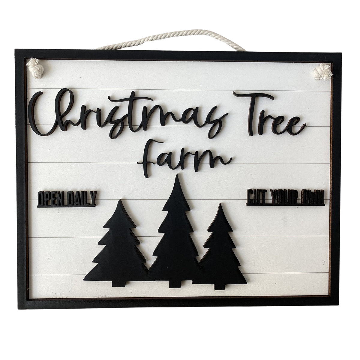 Bring a touch of rustic charm to your holiday decor with this customizable tree farm sign. Perfect for adding warmth to any room.