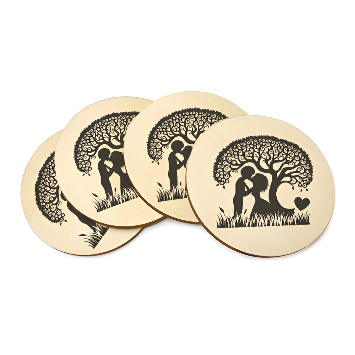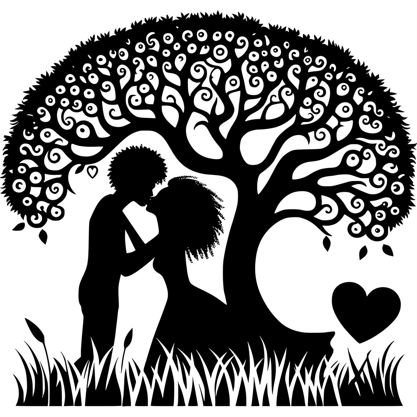 This image of a couple in love kissing under a tree can be used for coasters, ornaments, cutting boards, keychains, Valentine's Day cards, wall signs, anniversary gifts, wedding invitations, and much more. Check out the entire collection for different ages and world origins of people.