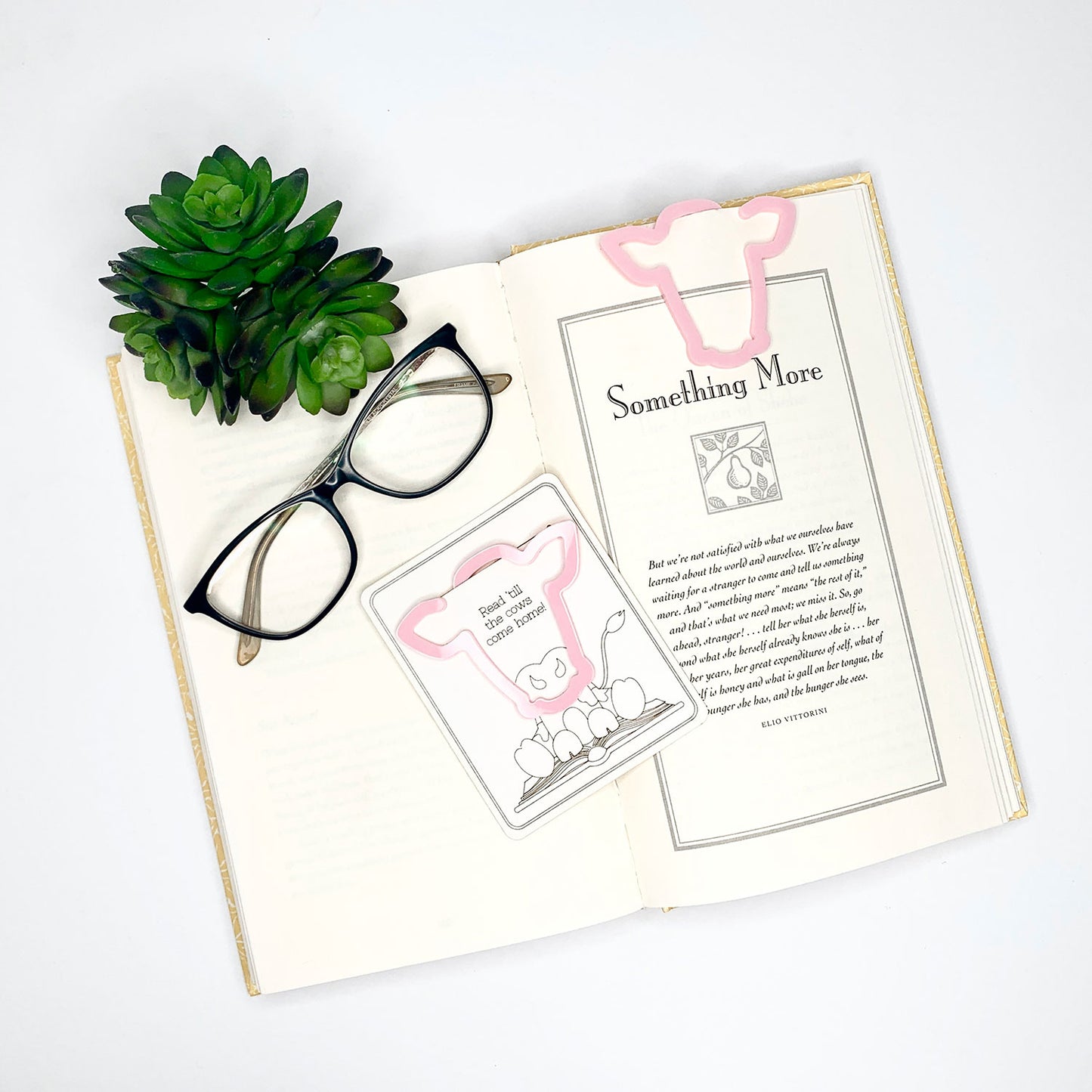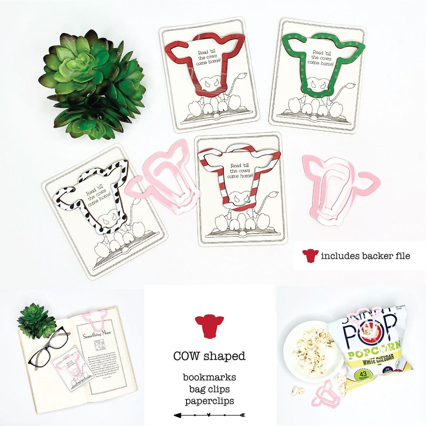 Cow-Shaped Bookmark with Card Backer - Paperclip - Snack Bag Closure