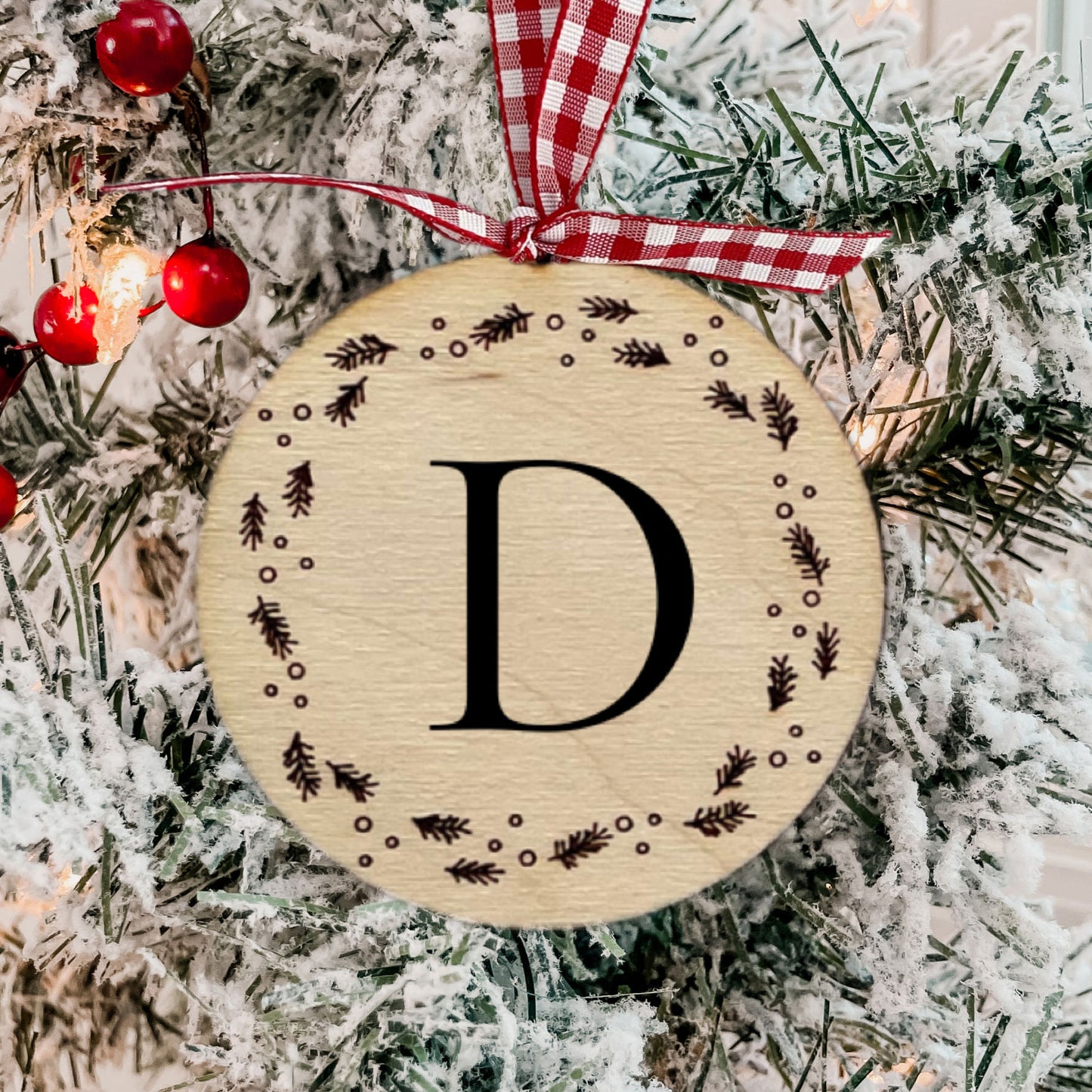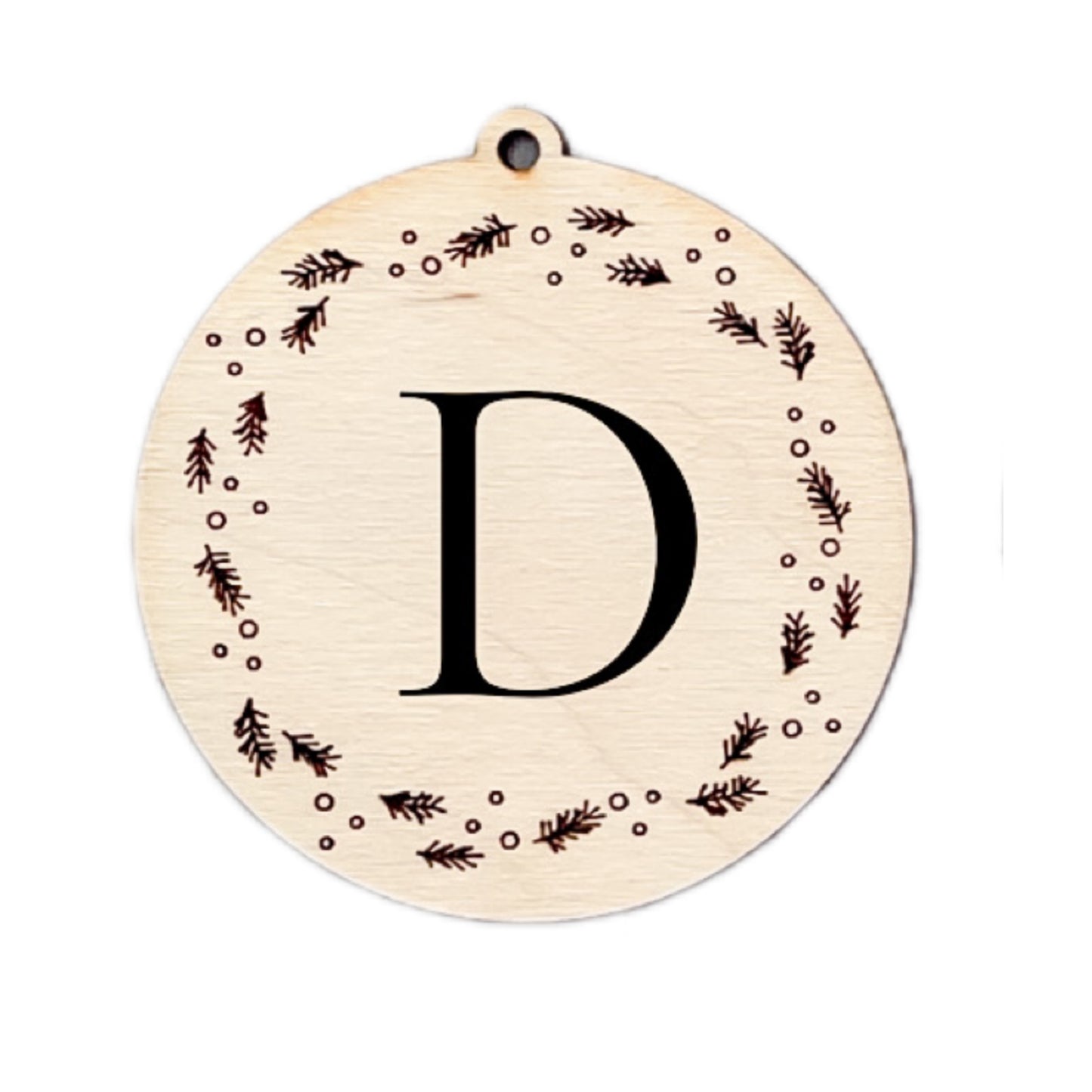 This laser cut design is perfect for customization. Add a letter or a name to the center of the ornament and give it as a gift. The wreath design is SCORED. The letter added to the center of the ornament is EB Garamond from the text Library. You can use any font you want though to make it your own.