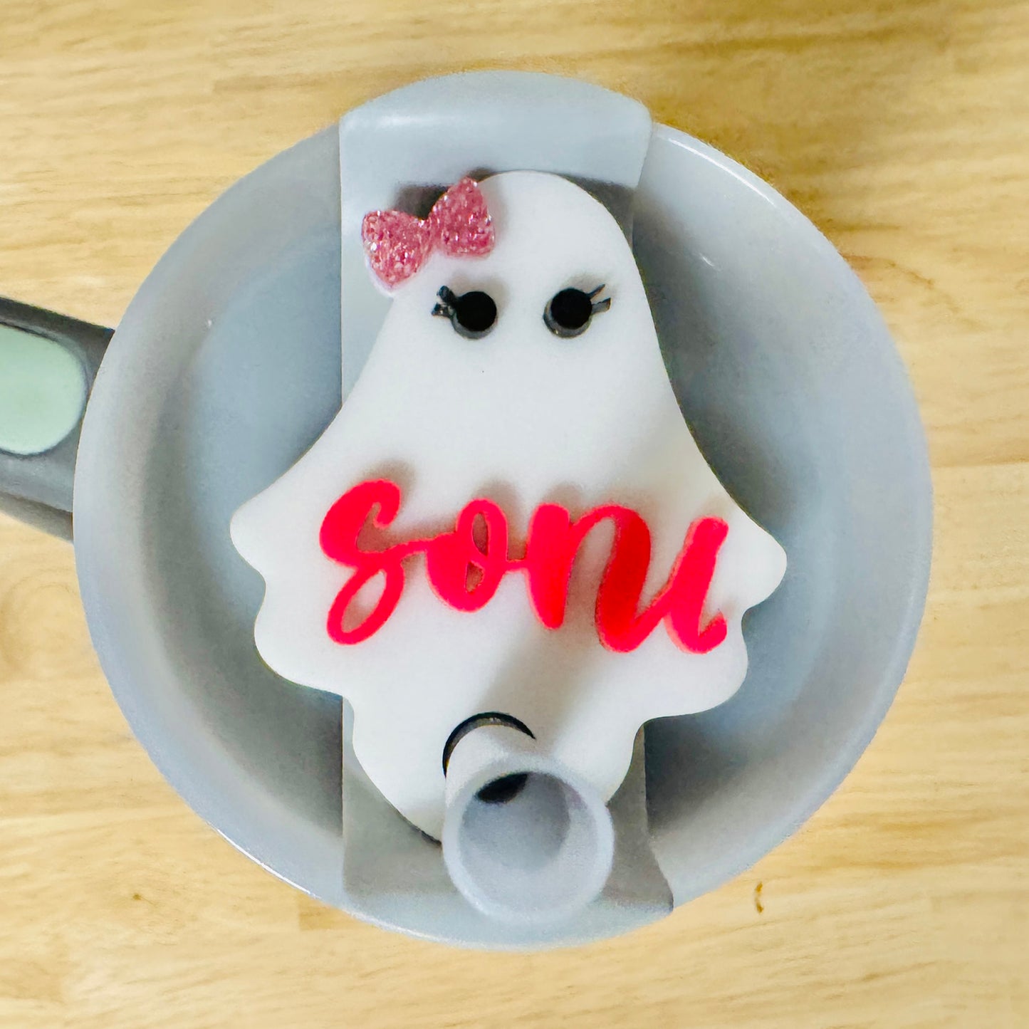 Cute Ghost with Bow Topper compatible with 30oz Stanley Tumbler