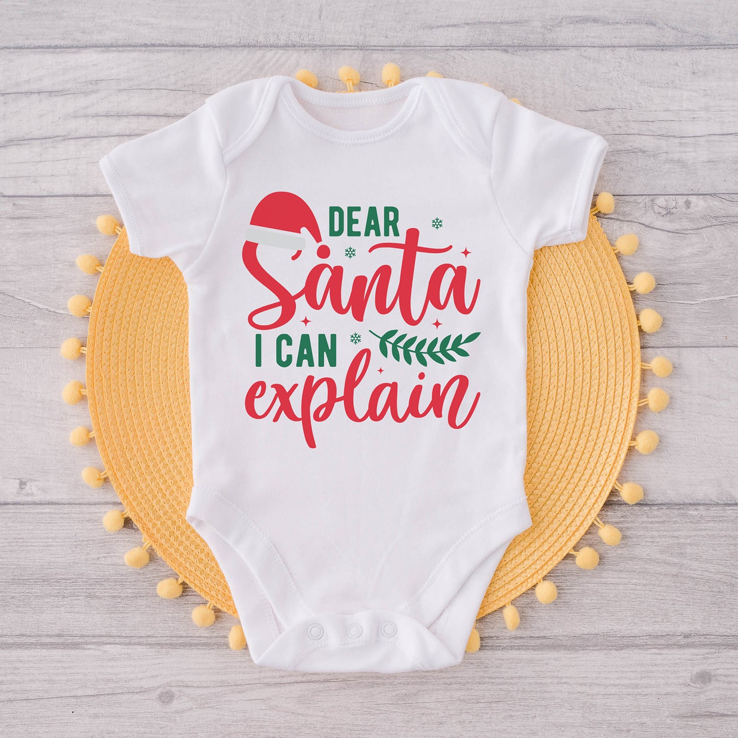 Welcome Santa with a smile and a twinkle in your eye, and let our "Dear Santa, I Can Explain" laser cut graphic be a part of your holiday traditions. Spread the laughter, and make this Christmas one to remember with joy and laughter all around. The high-quality iron-on material ensures long-lasting wear and easy application. Simply iron on to any desired item or surface such as a shirt, tote bag, mug, or anything else you want to show off.