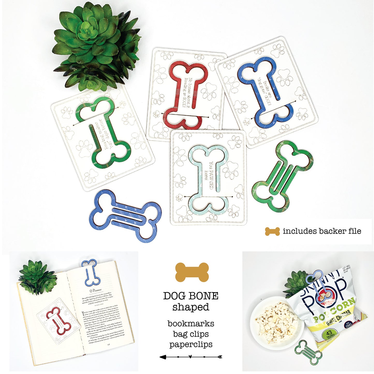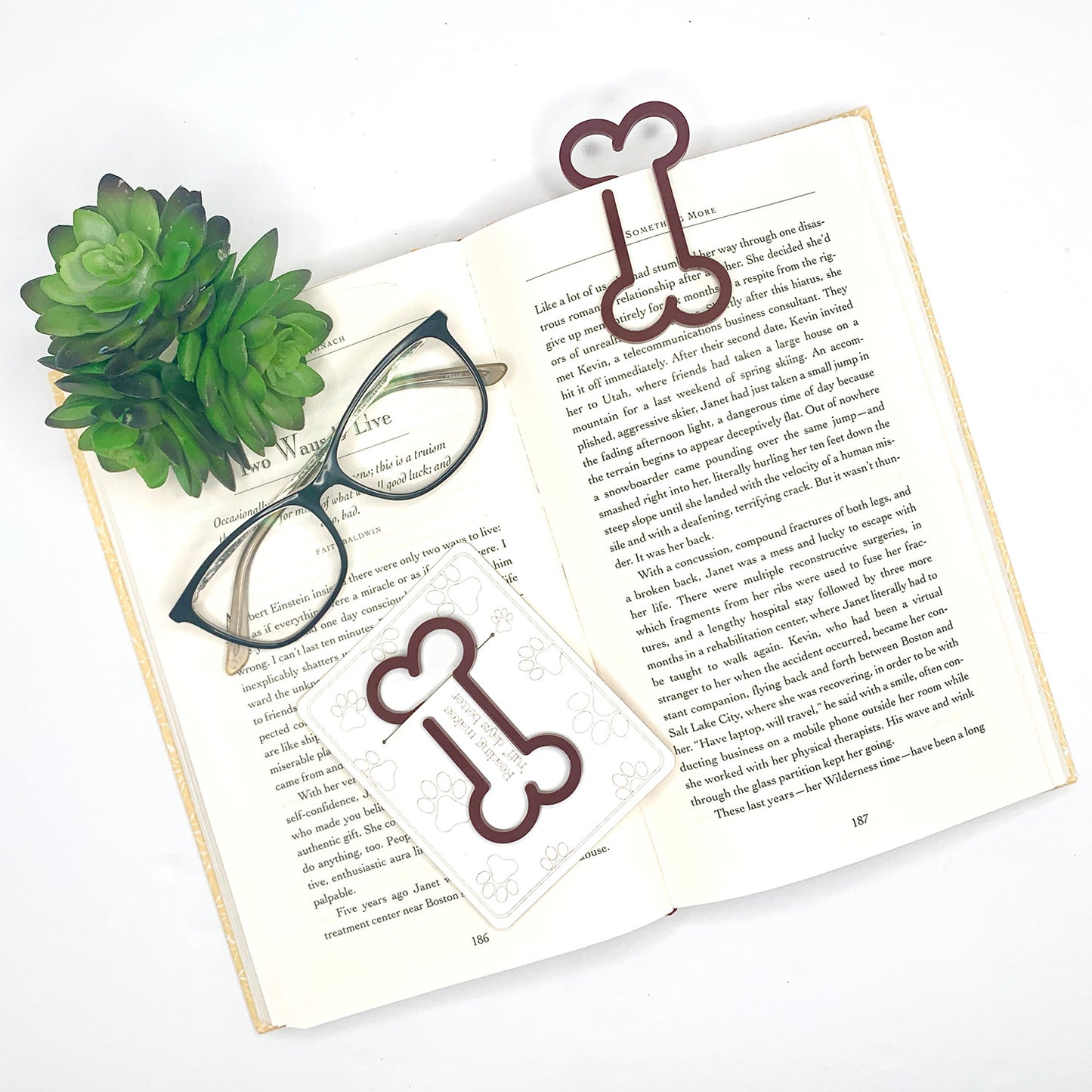Dog Bone-Shaped Bookmark with Card Backer - Paperclip - Snack Bag Closure