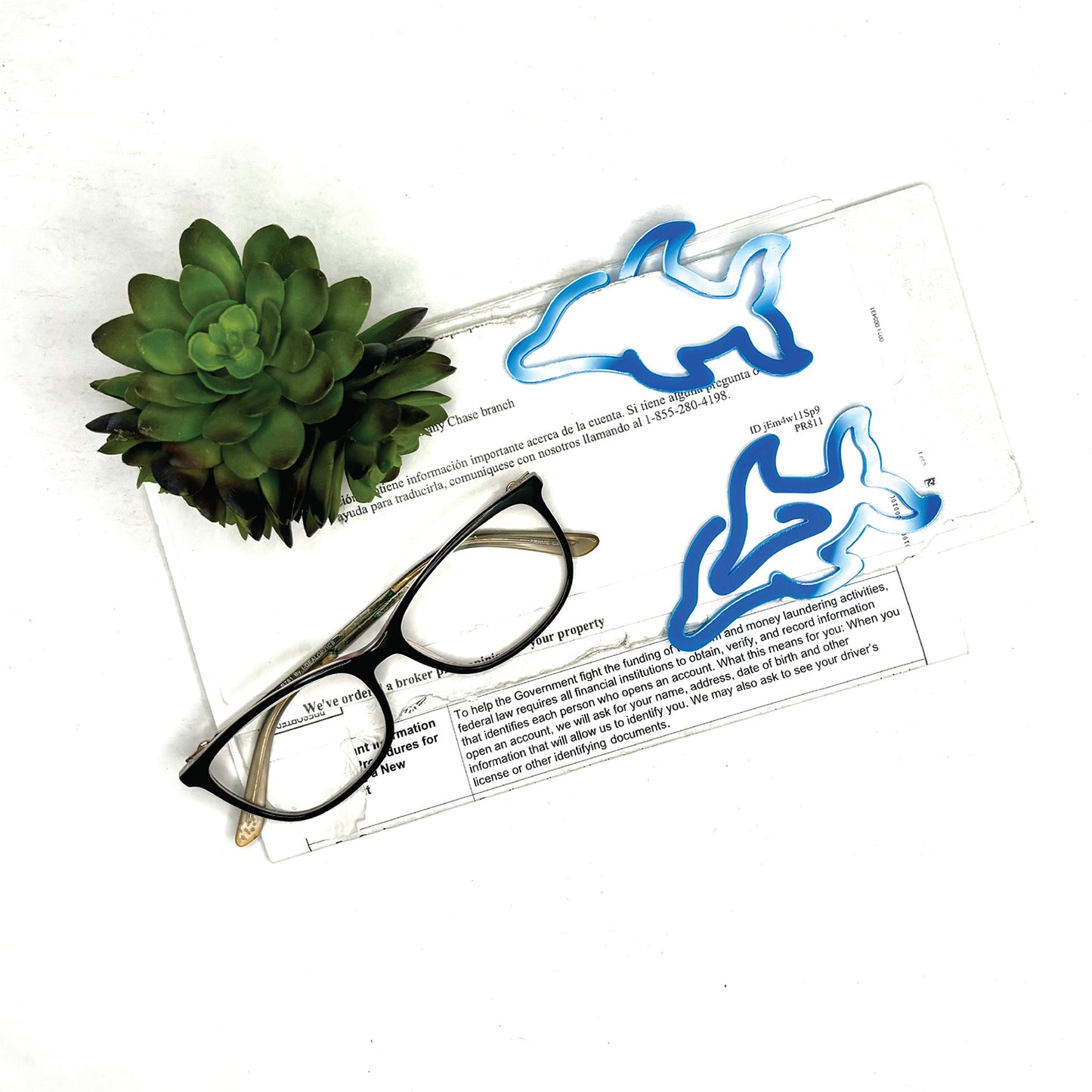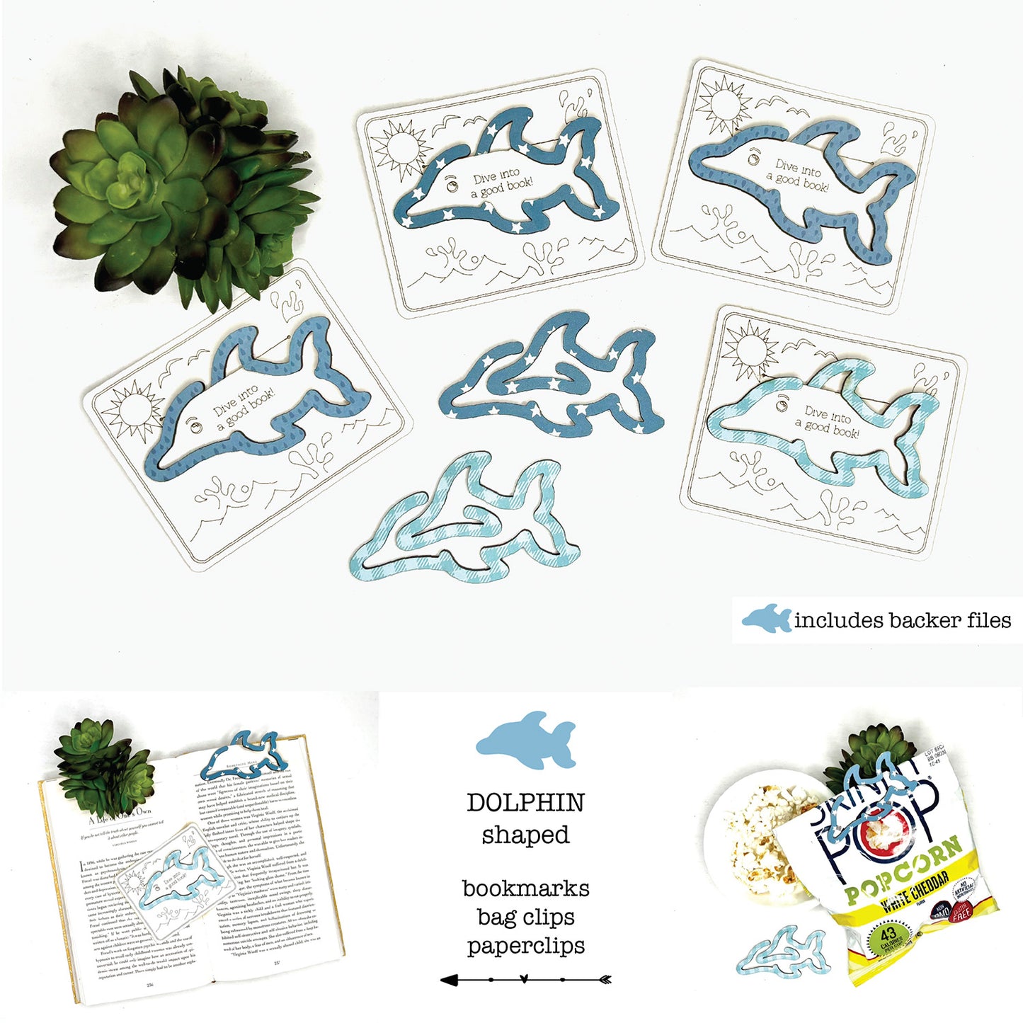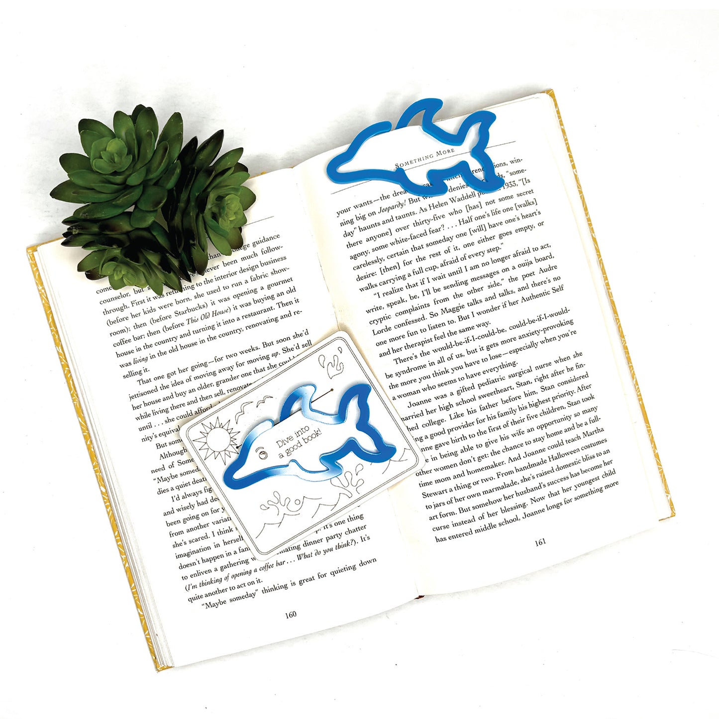 Dolphin Shaped Bookmark with Card Backer - Paperclip - Snack Bag Closure