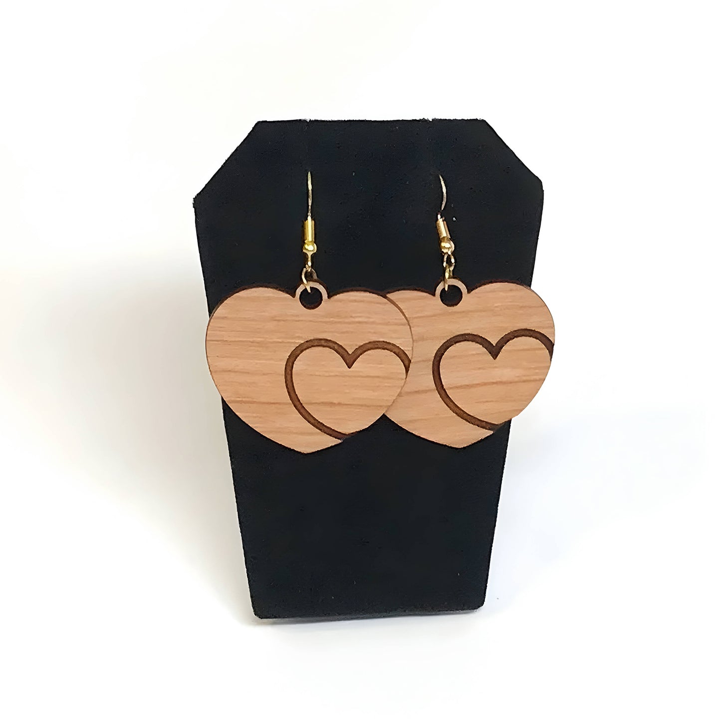 This laser cut, engraved double-heart earring celebrates relationships and love. Perfect for mothers, sisters, wives and more.