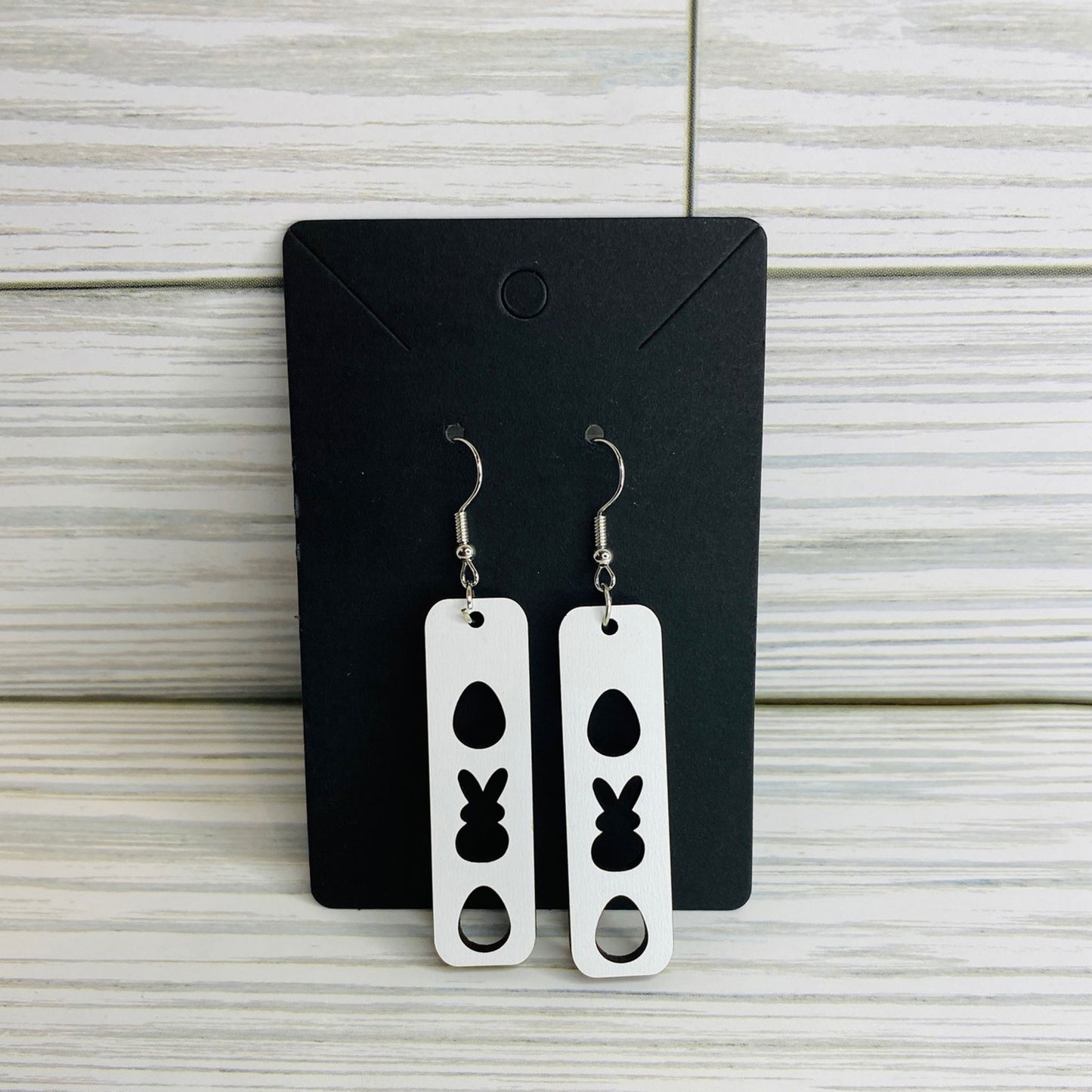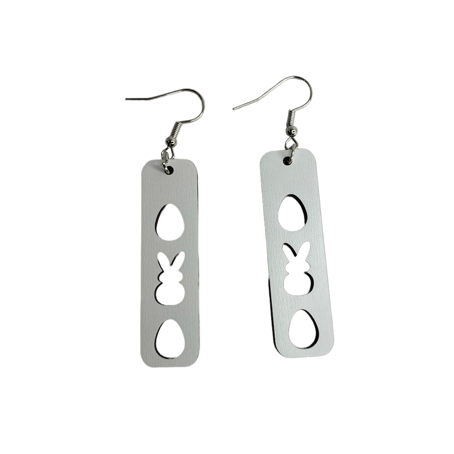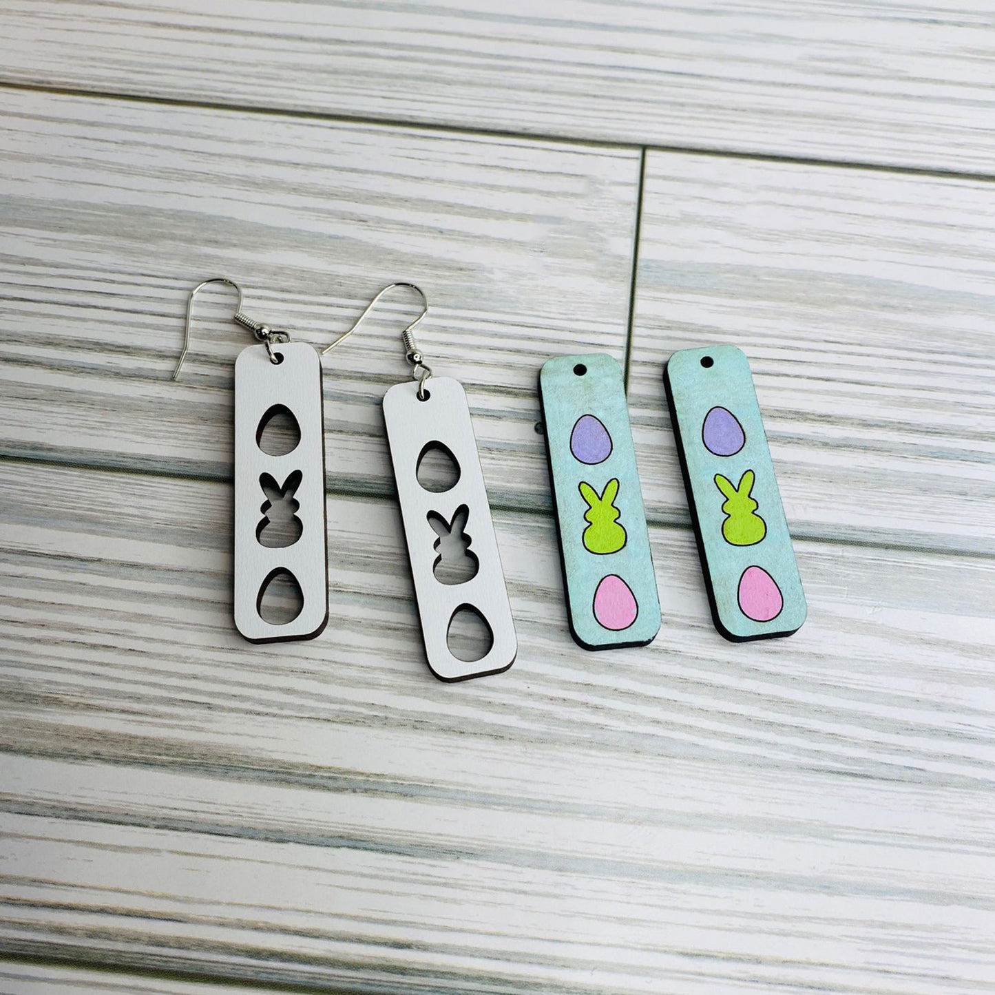 These adorable Easter-themed bar dangle earrings are super versatile. You can choose to laser cut, score or engrave the bunny/eggs on the inside. Score them if you want to paint the earring to make it easier. These are such a fast cut and will compliment any outfit. Great way to use scraps to sell earrings at craft shows & fairs. Check out the other bar designs on the catalog for other holidays and shapes.