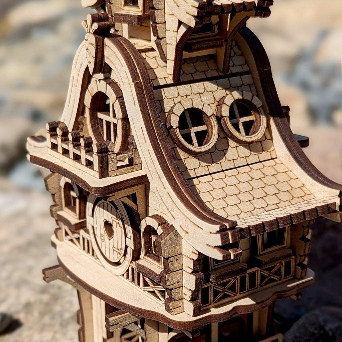 Bunny House design — an enchanting retreat for garden bunnies. This intricately crafted abode features a curved roof, detailed garden elements, and a bunny balcony. Secure it near flowers with the optional stake for a whimsical addition to your garden decor.