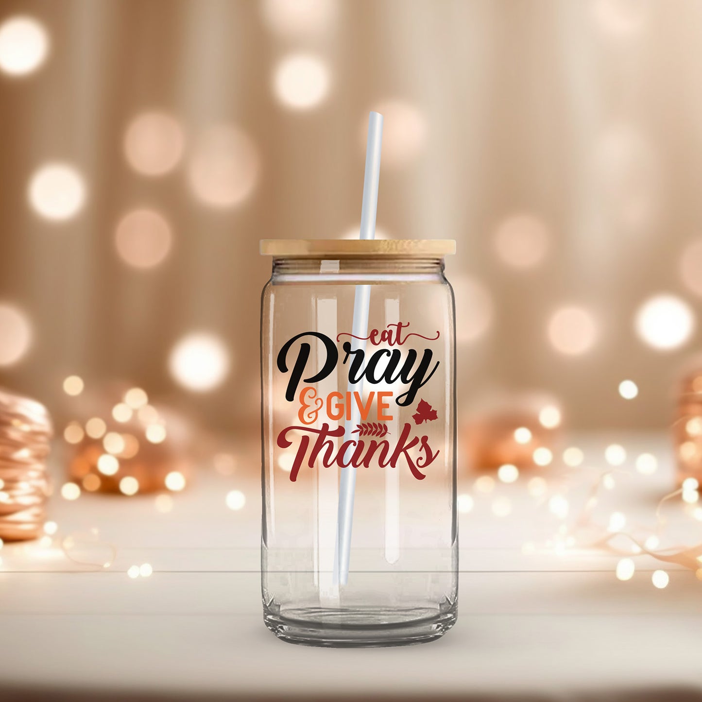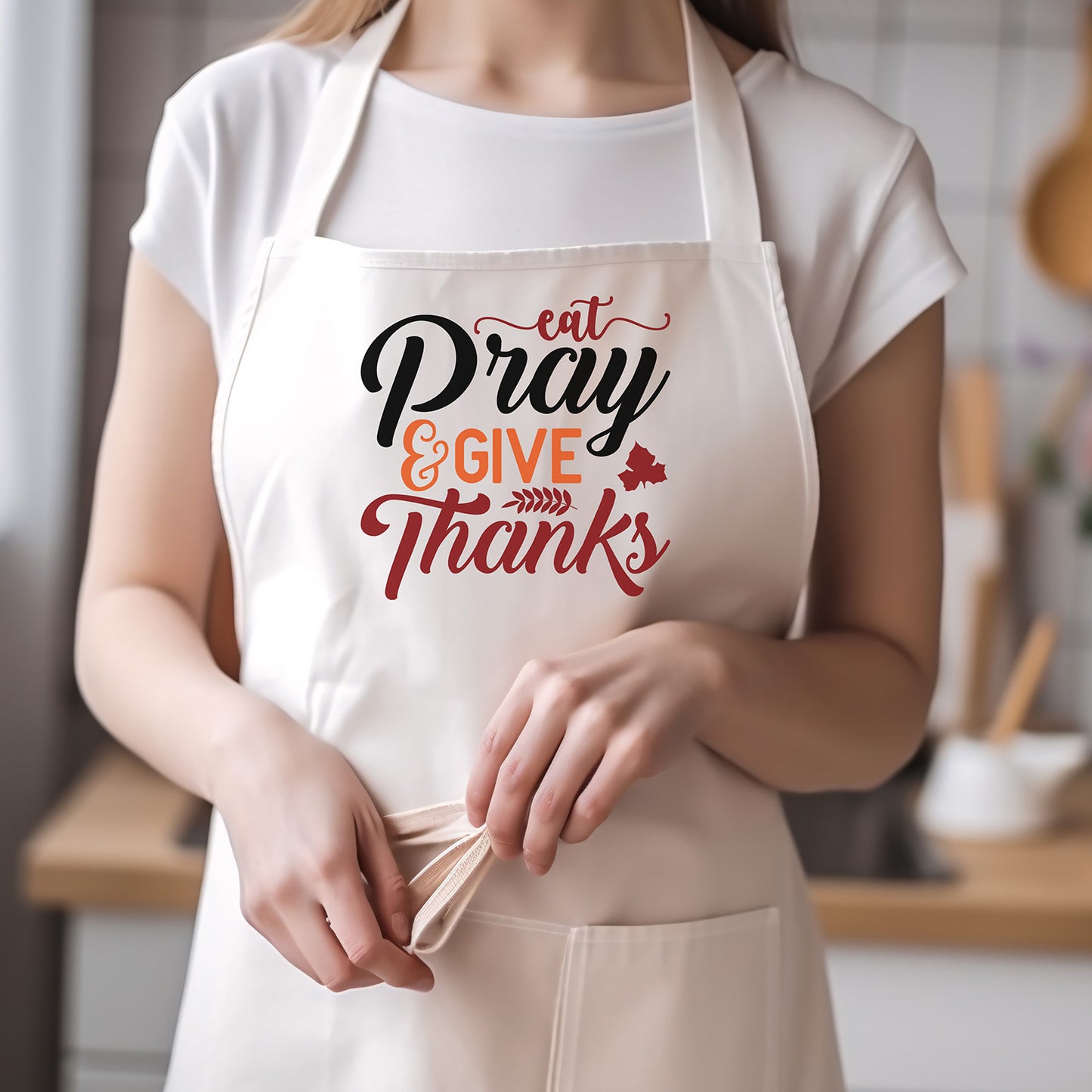 Embrace the essence of gratitude and cherish the spirit of Thanksgiving with our "Eat, Pray, and Give Thanks" graphic. This beautifully crafted, laser cut design encapsulates the core values of the holiday season, reminding us to appreciate life's blessings and savor the joy of coming together with loved ones. The high-quality iron-on material ensures long-lasting wear and easy application. Simply iron on to any desired item or surface such as a shirt, tote bag, mug, or anything else you want to show off.