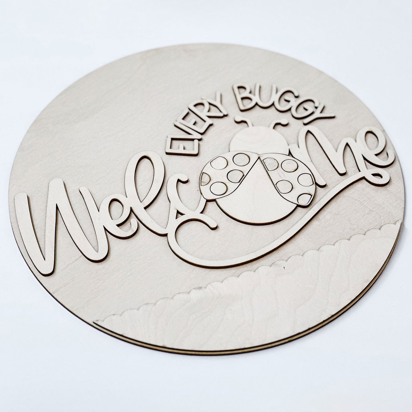 Add a touch of whimsy to your front door with the "Every Buggy Welcome Ladybug Door Hanger". This adorable, laser cut door hanger is the perfect way to greet guests and infuse your home with charm.