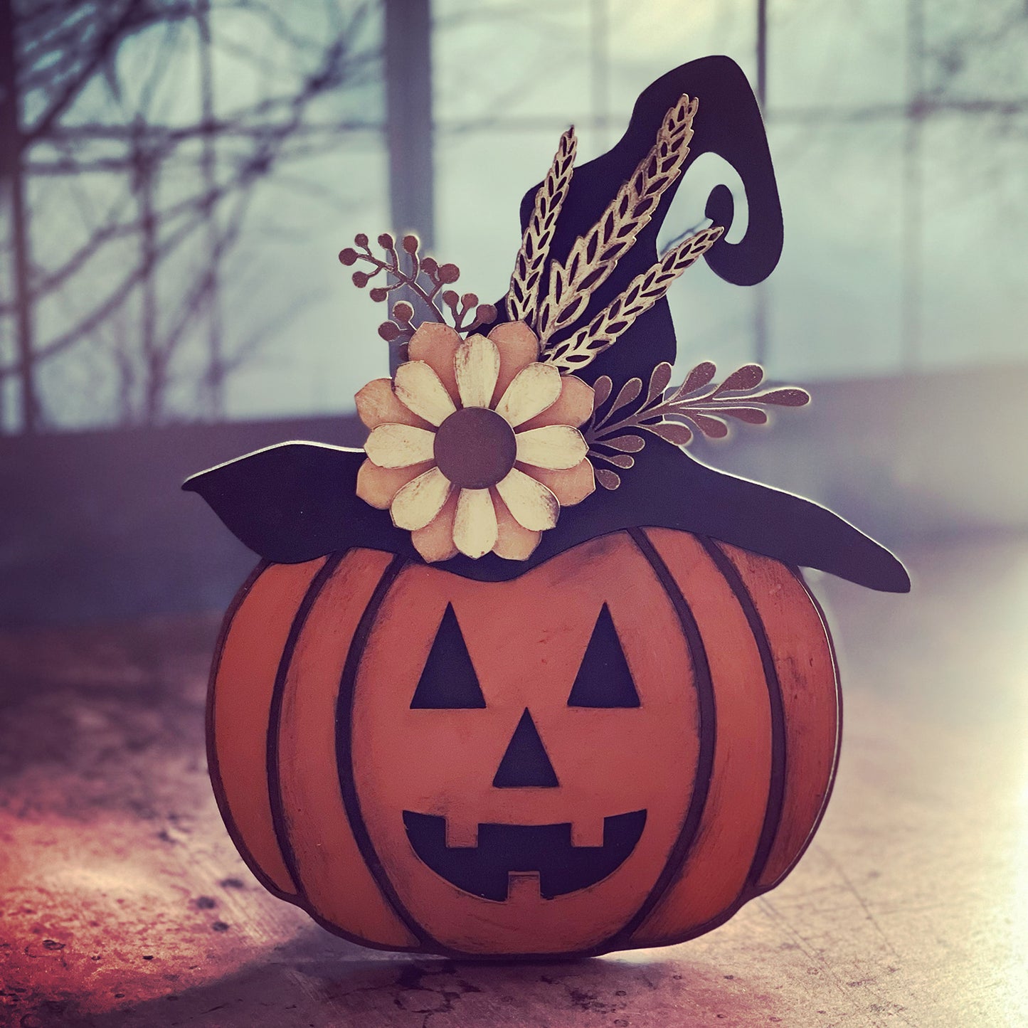 Fall Jack O' Lantern Witch Shelf Sitter