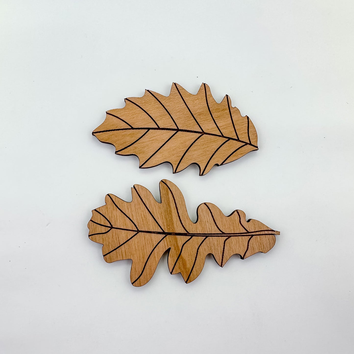 This laser cut design features two different fall leaf shapes. The inside is engraved to showcase the veining that are in actual leaves. Then the outside cuts. You'll love these with a hair clip glued on the back for a hair accessory, or with a magnet glued on the back to decorate your fridge for fall.