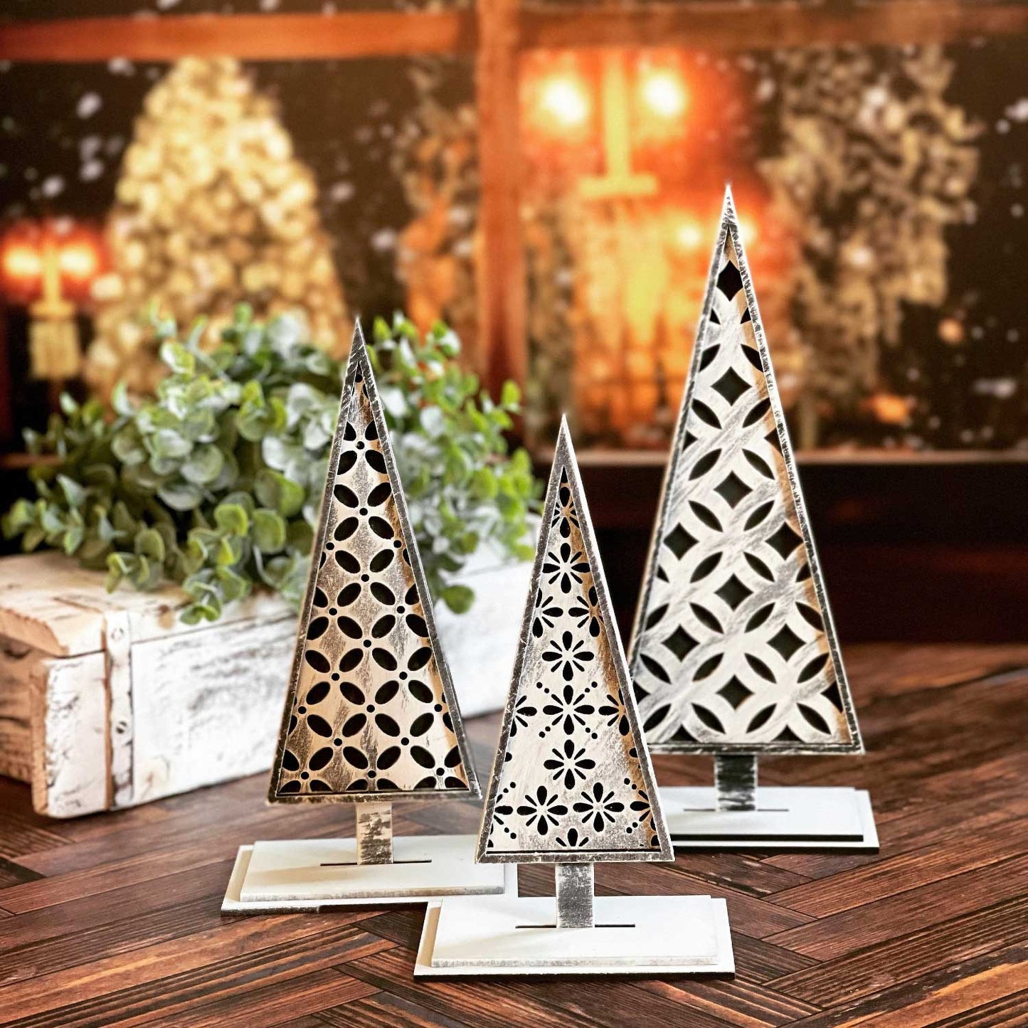 Farmhouse Style Christmas Tree Trio Shelf Sitters