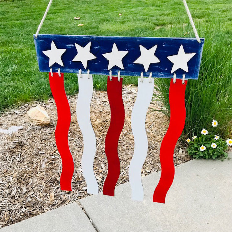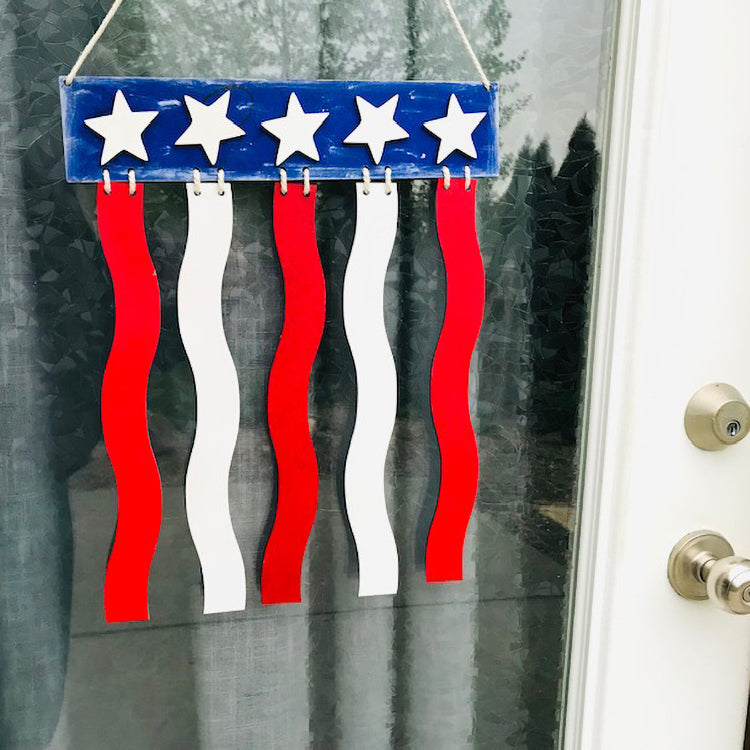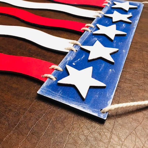 Celebrate the birth of our nation in style with this 4th of July laser cut door sign. This festive decoration is perfect for showing off your patriotic pride and welcoming your guests with a warm holiday greeting. Featuring scored lines for star alignment. This laser cutting design fits on one standard Glowforge-sized board but can be enlarged to fit your needs.