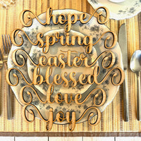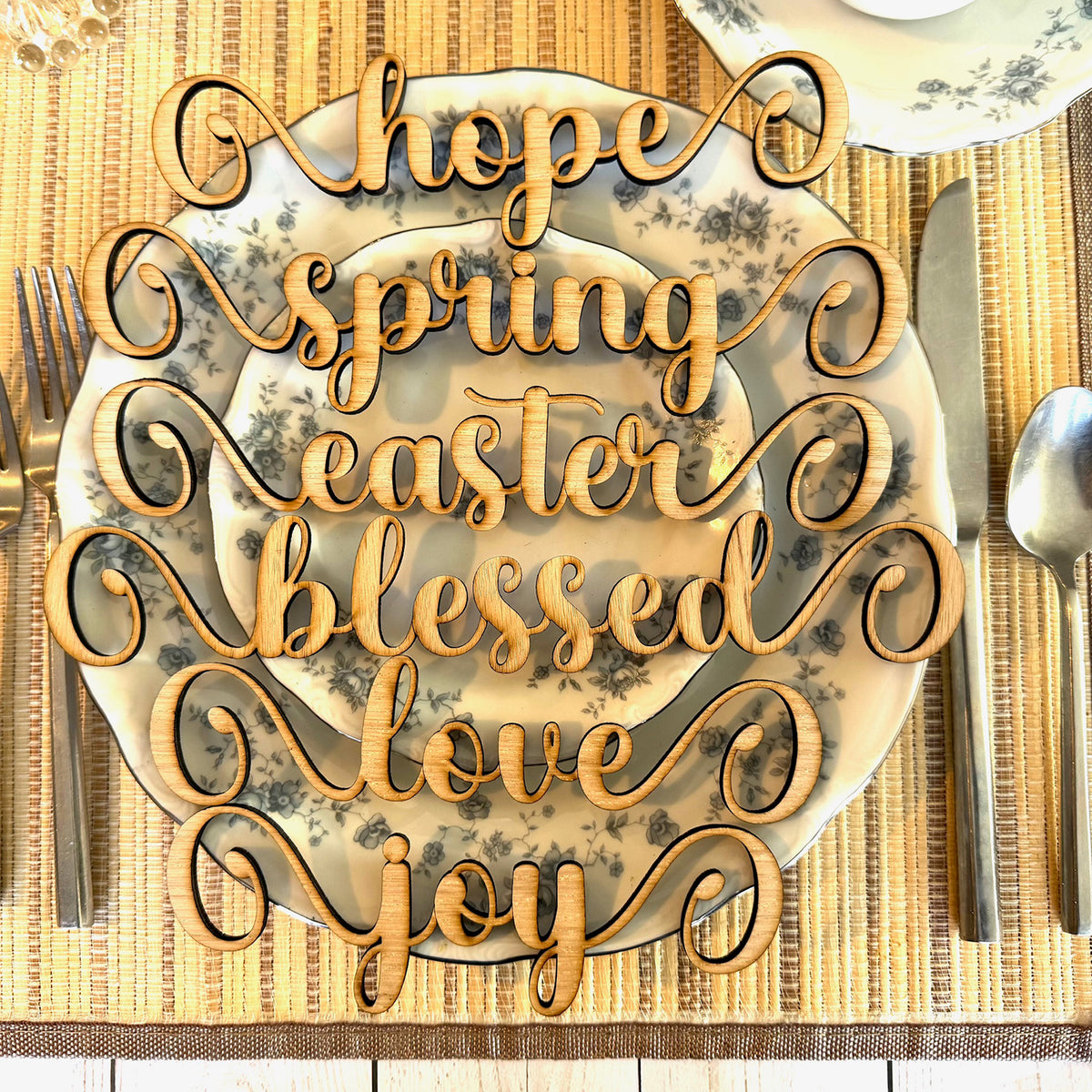 Elevate your Easter table with these beautifully designed laser-cut word decorations! Featuring 'Blessed,' 'Love,' 'Hope,' 'Easter,' 'Spring,' and 'Joy,' this set adds a heartfelt and festive touch to dinner plates and seasonal gatherings. Perfect for Easter brunches, spring celebrations, and DIY laser crafting!