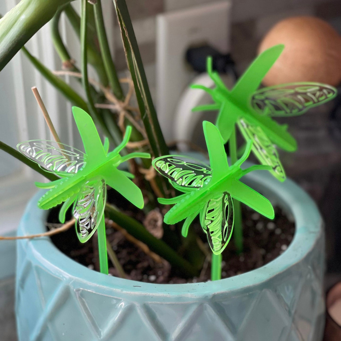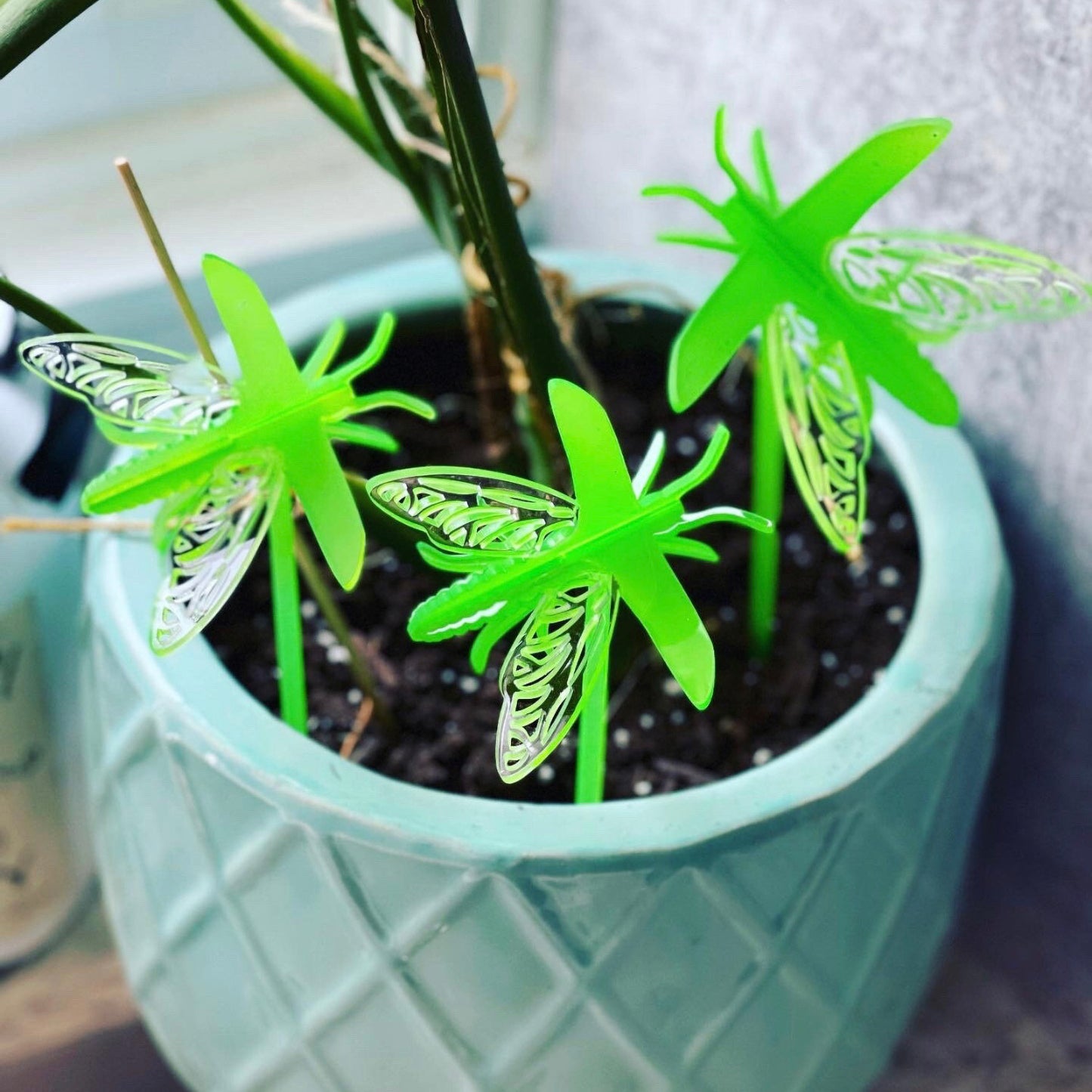 A wonderful way to decorate a little plant for a gift or just your household plants. Laser cut these from medium clear proof grade acrylic and add some green glow-in-the-dark paint or leave them as is. They make such a fun addition to any plant. Cut one or add all 3 to your plant. They only use less than a sheet of material to cut all 3. A great addition to your upcoming craft event. Happy making.