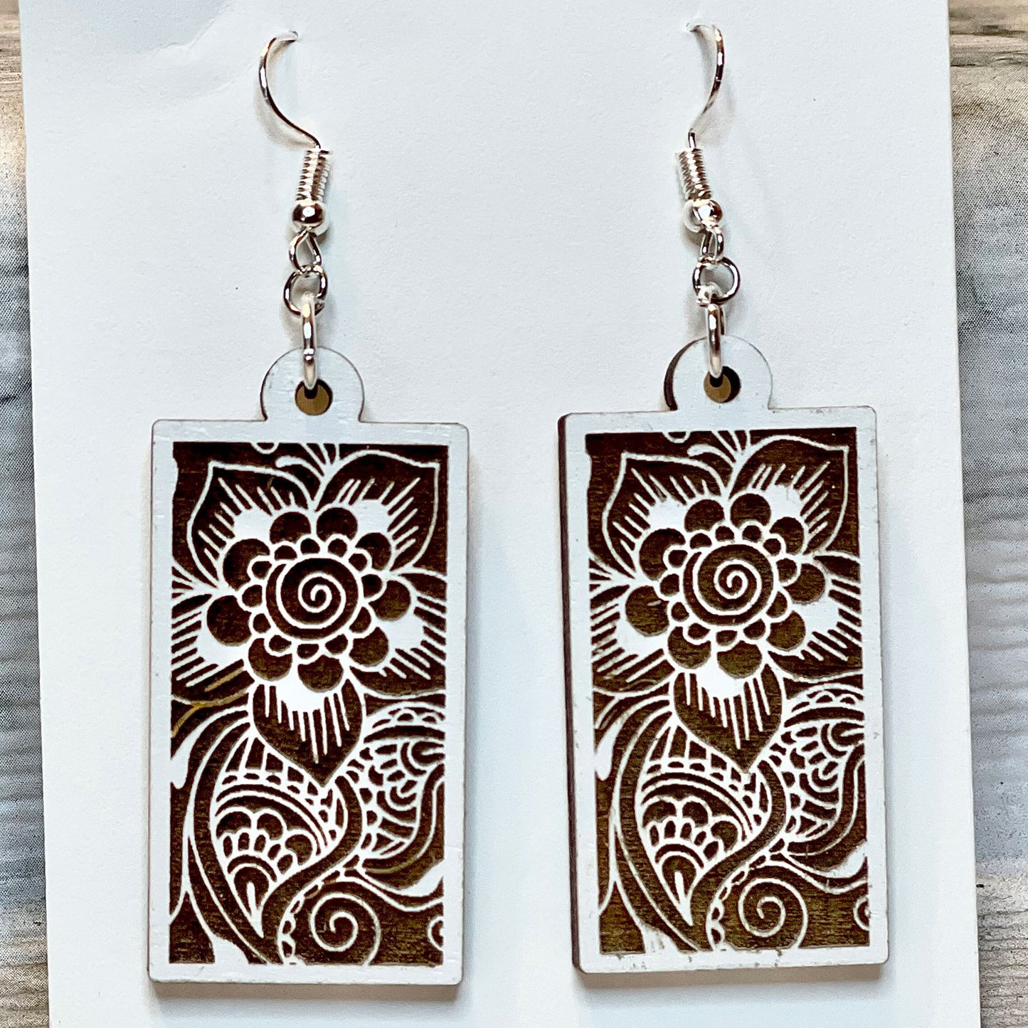 This is a very detailed and delicate floral mandala, laser cut and engraved to give you a classy designed earring. Just engrave and cut from your preferred material or add some color and make it really stand out. Also comes with a diamond-shaped version.