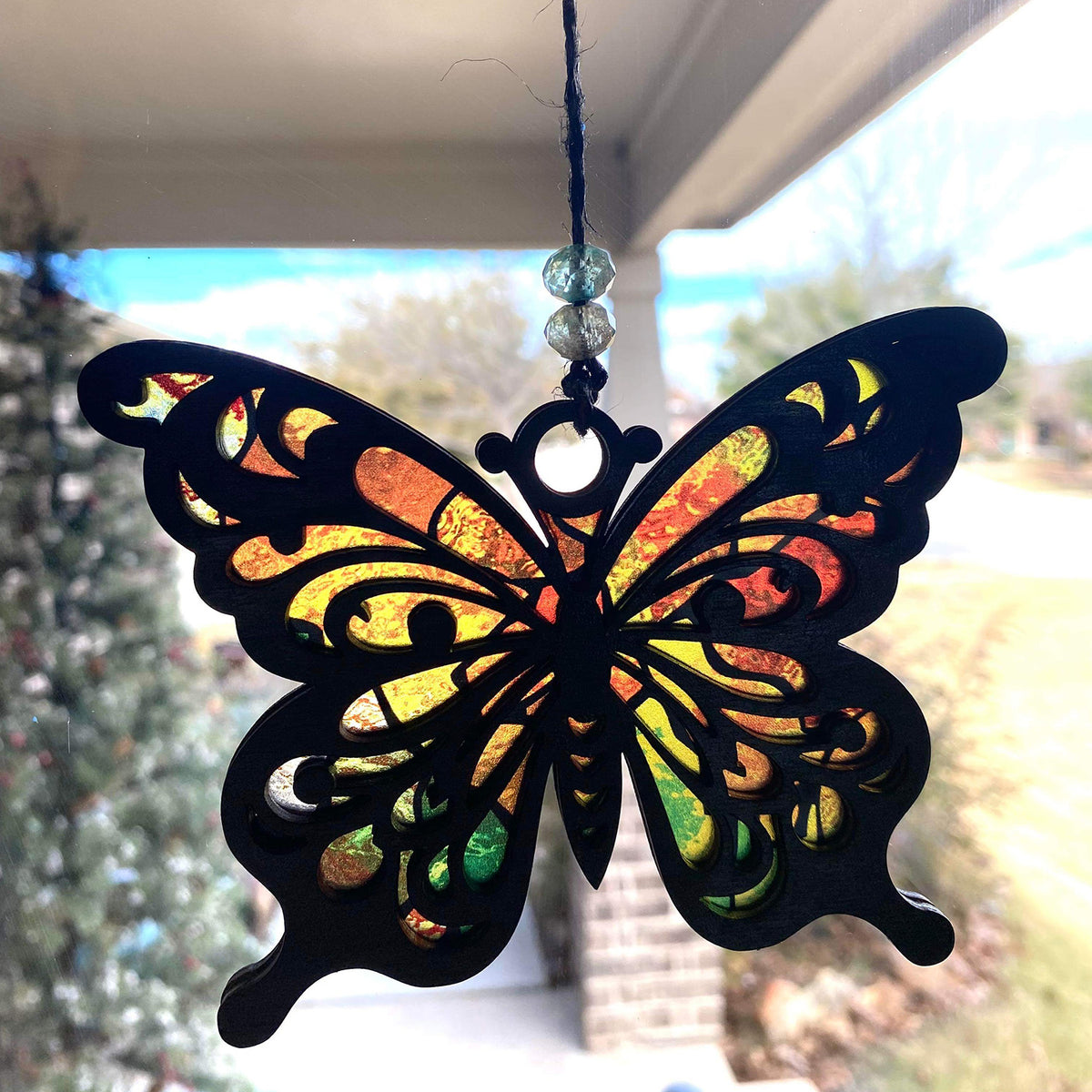 Bring a touch of nature’s beauty indoors with this dazzling butterfly sun catcher. Watch as sunlight dances through the vibrant wings, casting colorful reflections in your space. Perfect for adding a whimsical charm to any window or garden! Sandwich acrylic color of your choice between the 2 layers. Flex is used in these photos.