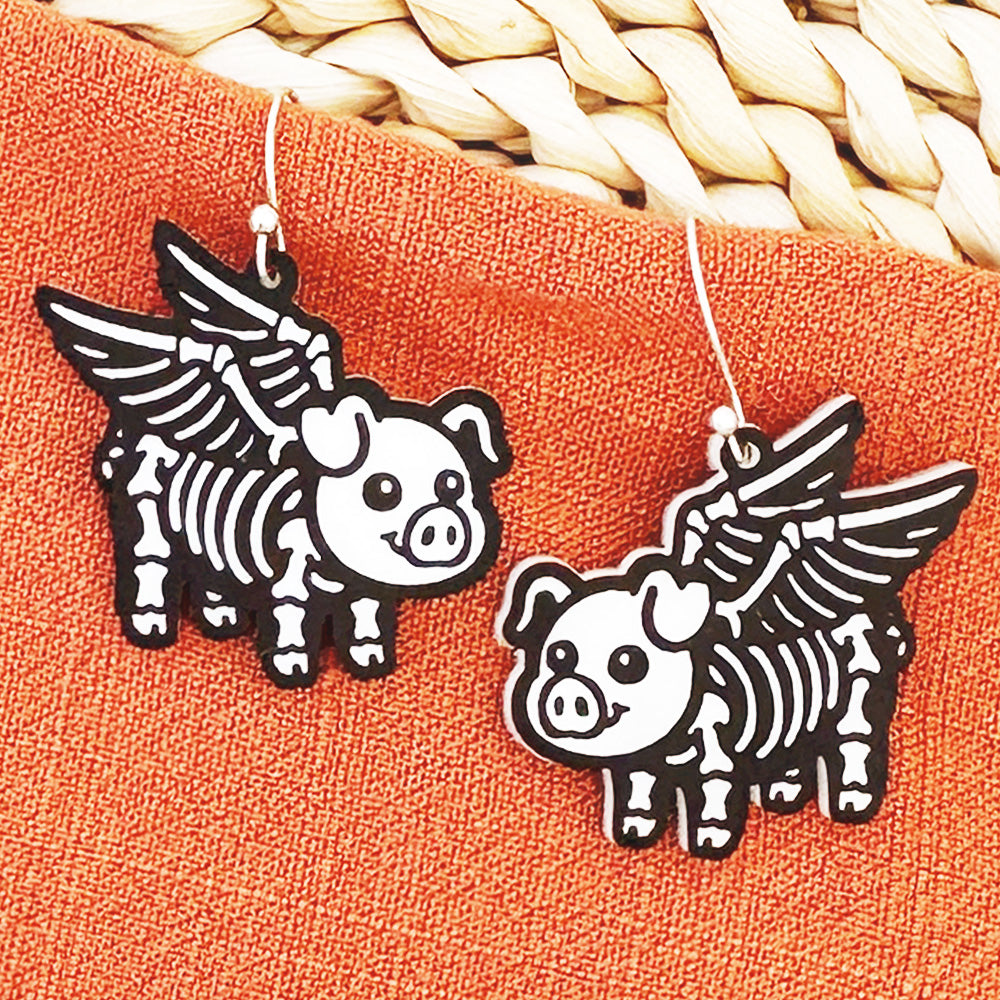 Add a touch of whimsy to your Halloween celebrations with this laser-cut file featuring a flying pig skeleton! Perfect for creating unique earrings, this design blends playful charm with spooky flair.