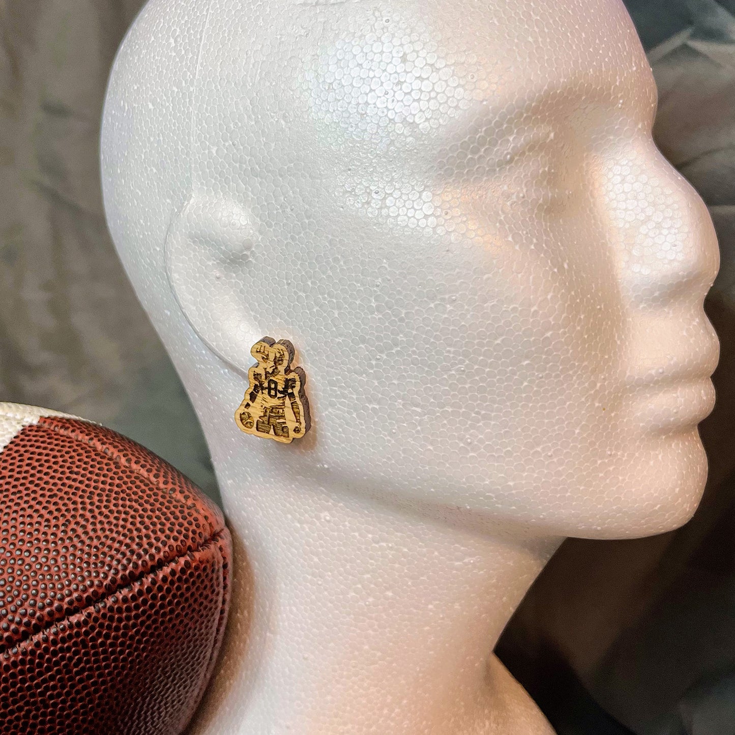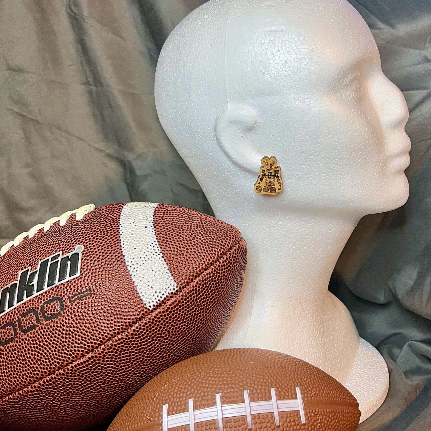Let's go team! Show off your team pride with these beautiful "Football Deer / Buck Mascot Stud Earrings. Whether it's a high school, college, or professional team, give them your support any day and every game day. Let's score that touchdown!