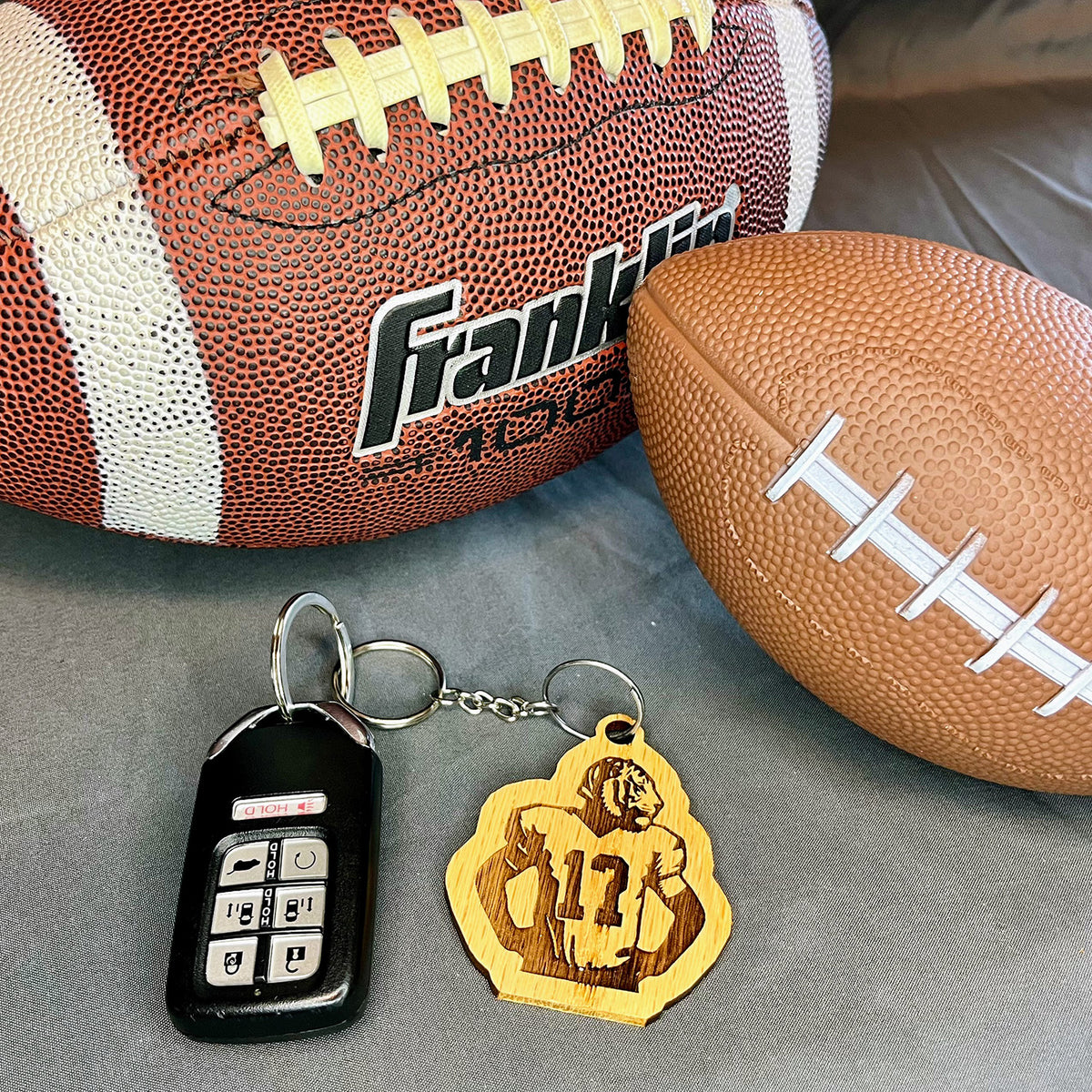 Let's go team! Show off your team pride every day with this keychain. Whether it's a high school, college, or professional team, give them your support all the time. Let's score that touchdown!