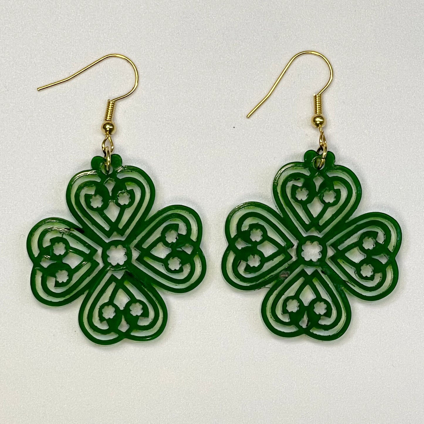 Fun four leaf clover earrings for laser cutting. They can be cut from green acrylic or from your choice of wood and painted to match your style.