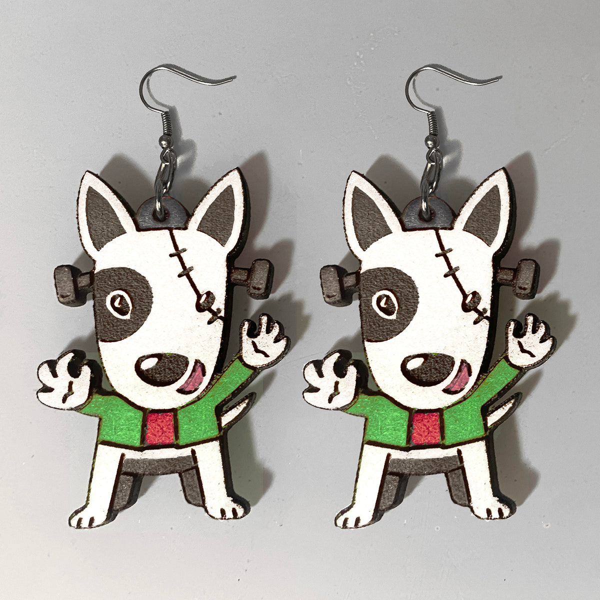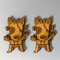 Perfect for those who love a blend of comedy and horror, these earrings bring the Frankenstein dog to life with their laser-cut precision and captivating dangle design.