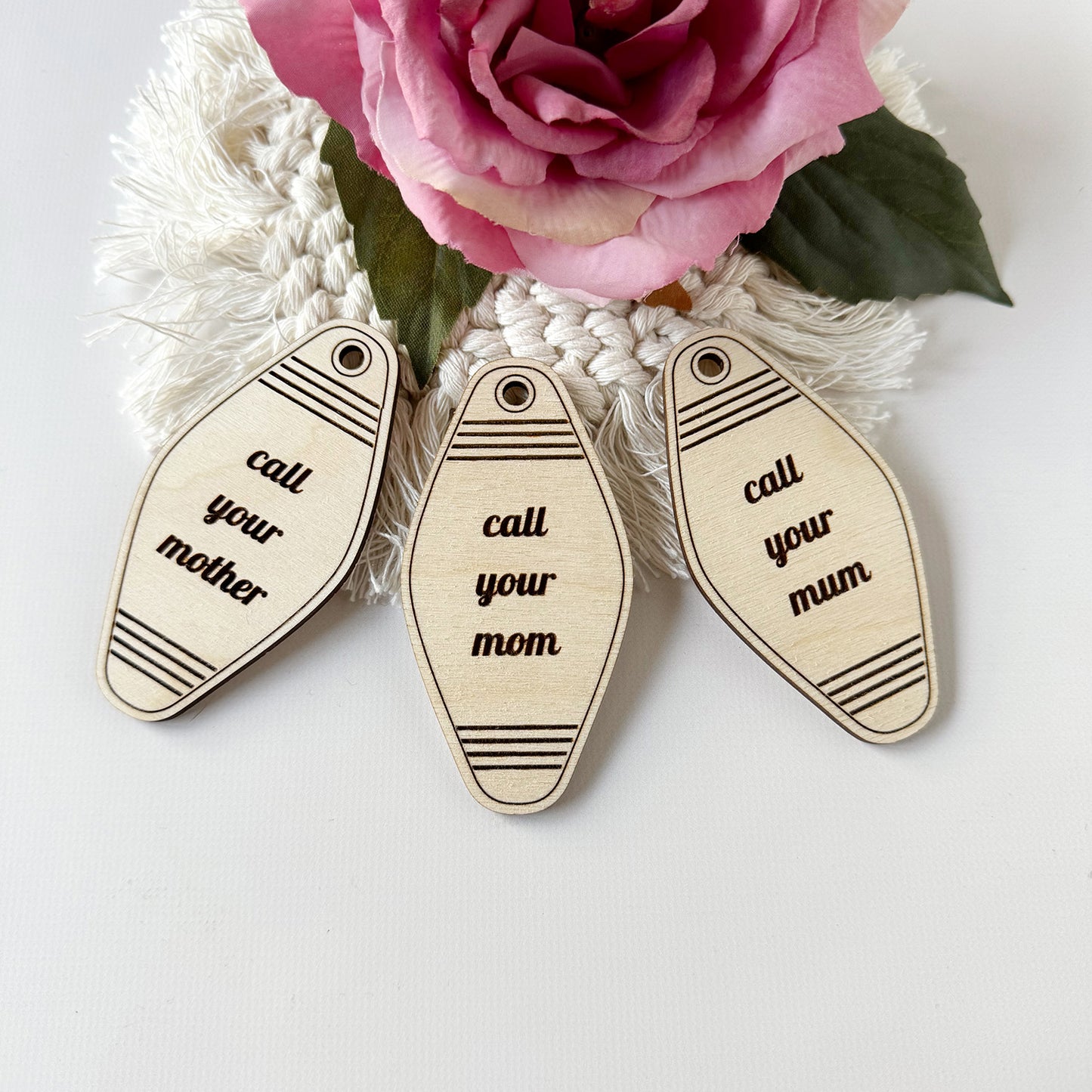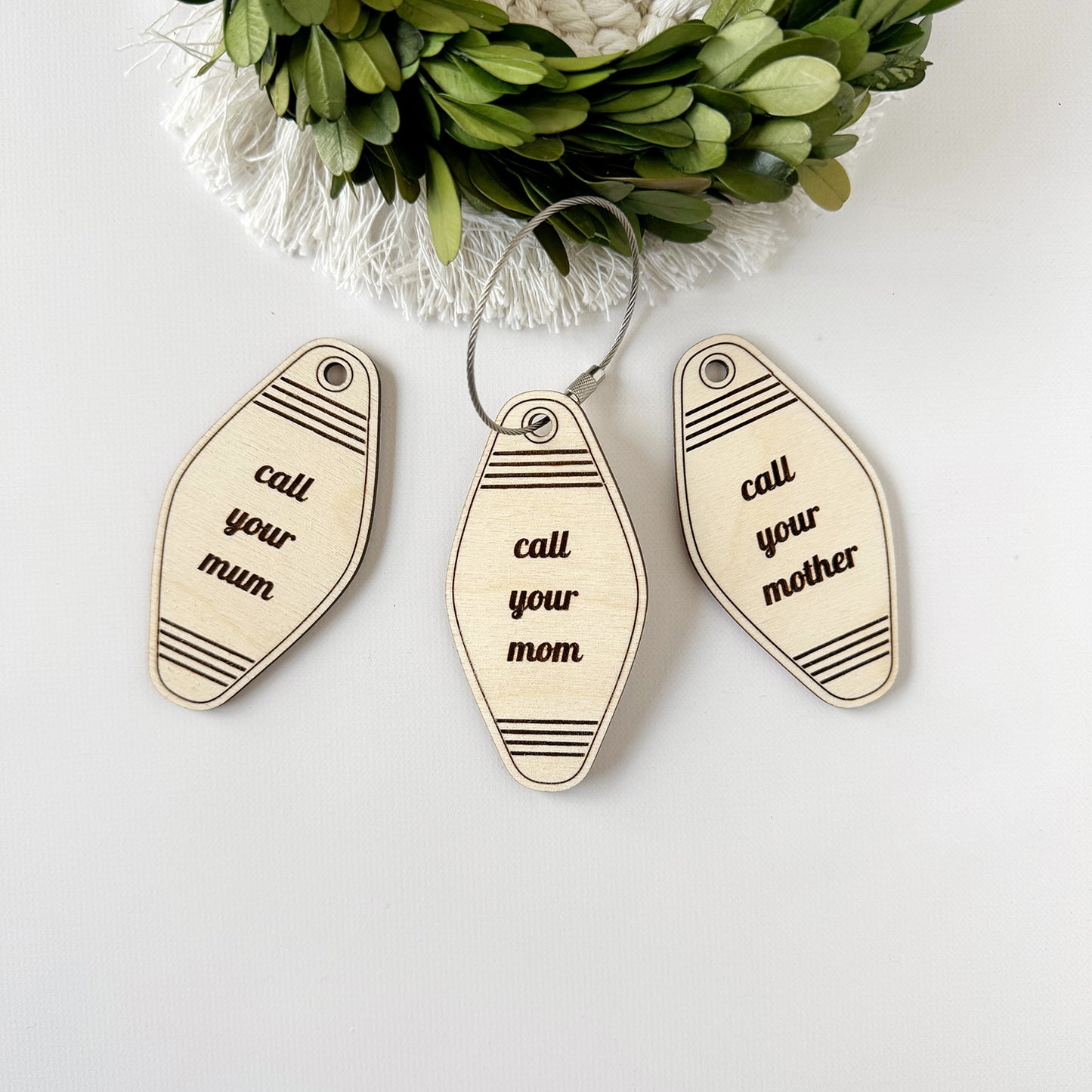 Funny Retro Motel-style Keychain 'Call Your Mom/Mum/Mother/Grandma or Nana' (Set of 6)