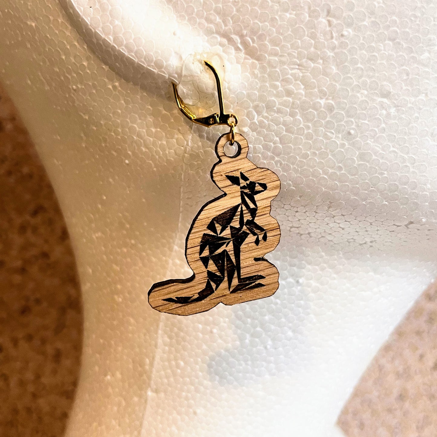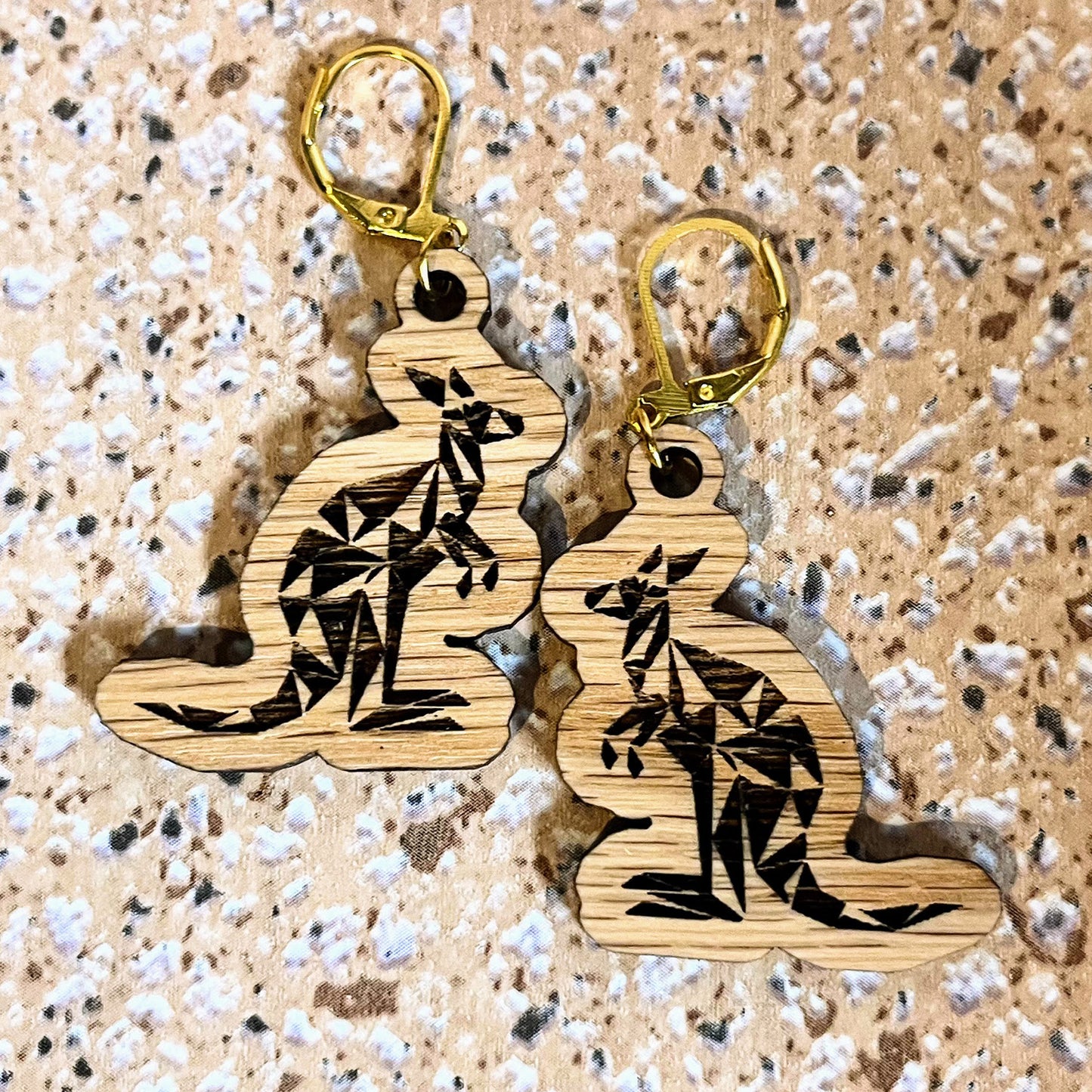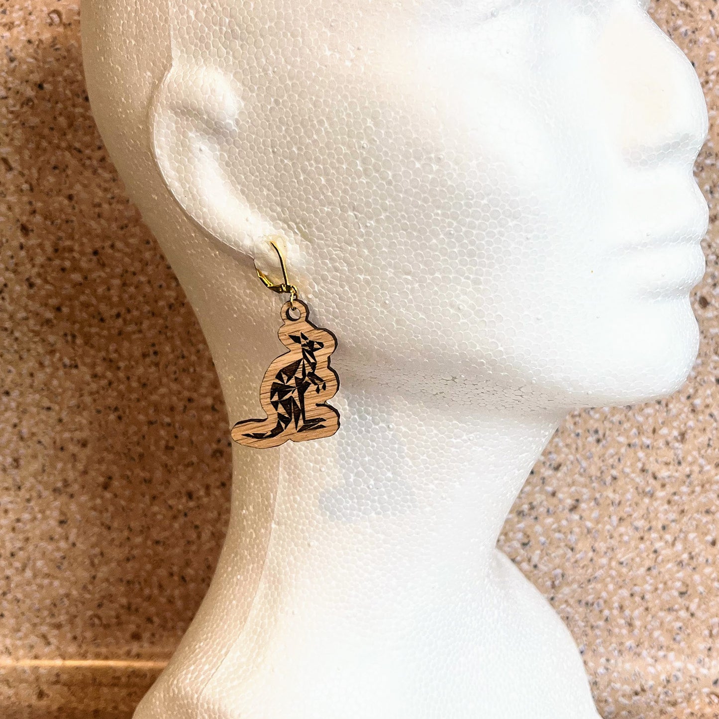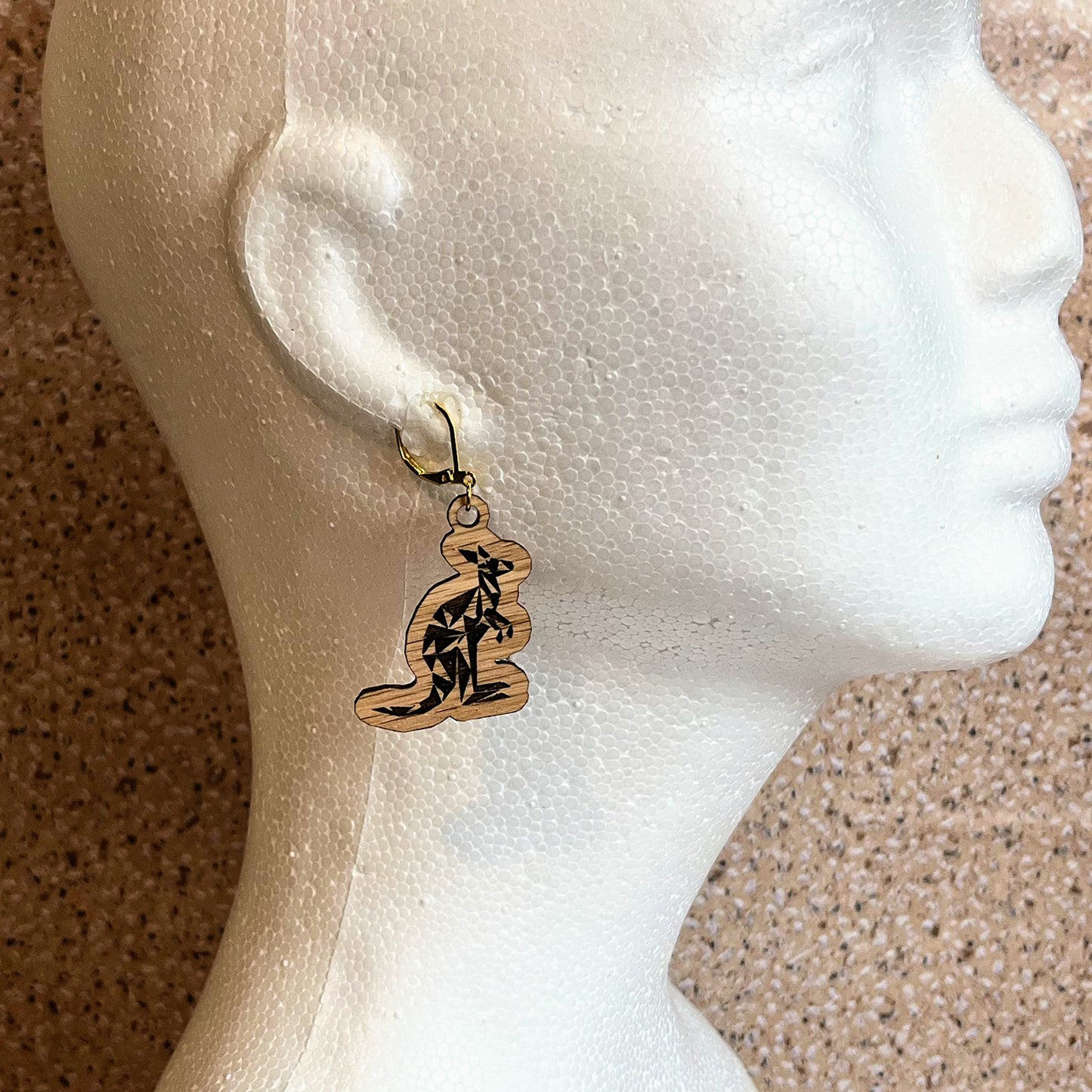Unlock your inner animal with these stunning Geometric Kangaroo Earrings #1! These earrings feature a unique geometric design that forms the iconic shape of kangaroos, combining the wild beauty of these creatures with modern geometric art. Perfect for pairing with any animal print or geometric patterned outfit, these earrings are a versatile and stylish accessory for any occasion.