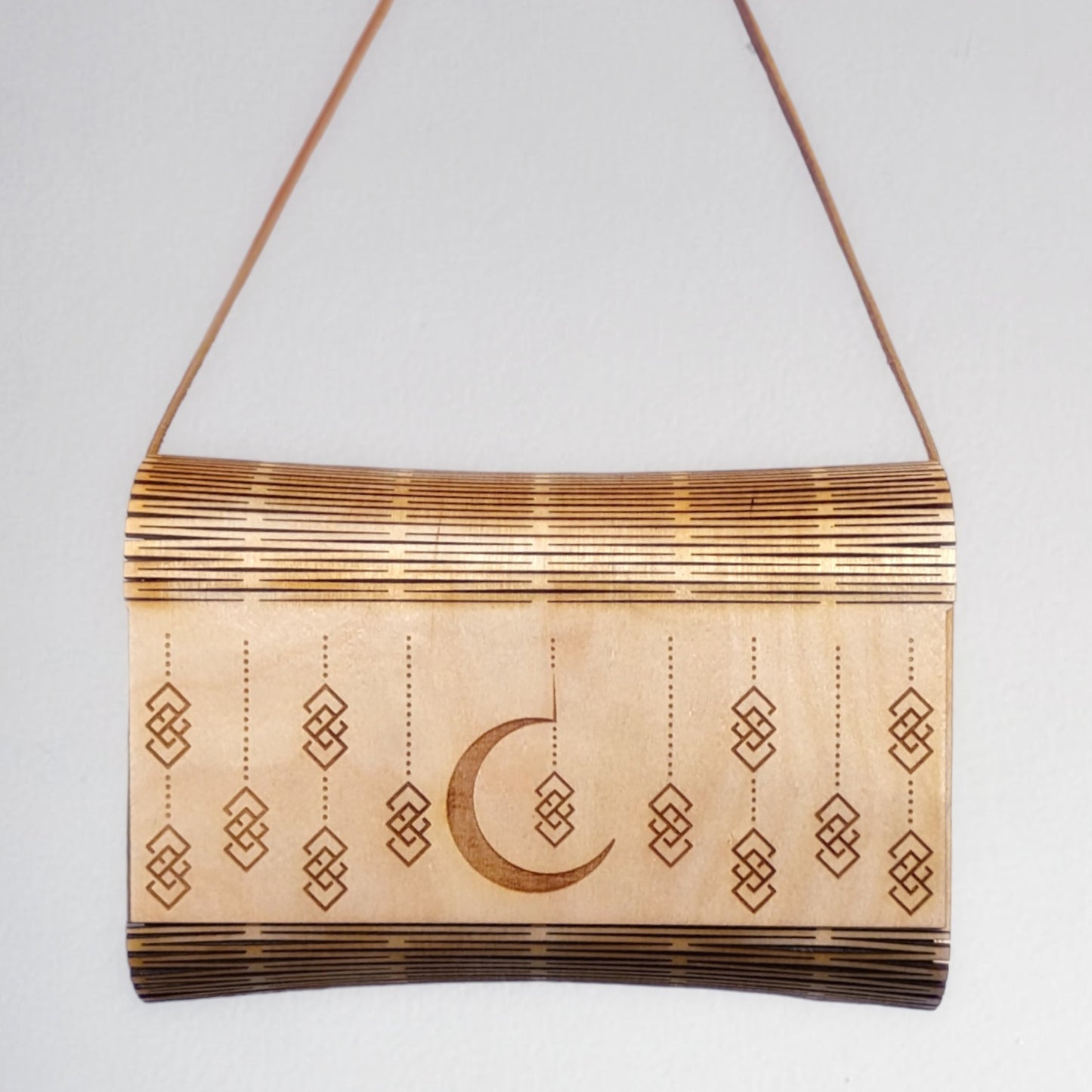 Geometric Moon Wood Purse Handbag Clutch with Optional Strap-Witchy Woman Gift